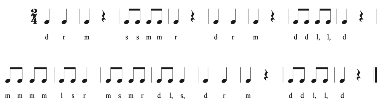 - The teacher beats the rhythm of the melody and the student repeats singing the melody (with or without solfa-syllables).
