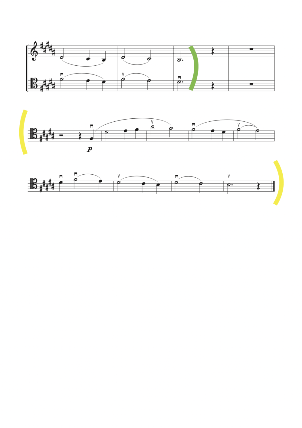 In the original score I marked in yellow what has been used as singing material and in red as playing material. I used the musical material between bars 1-12. I have repeated bars 5-12 switching the singing with the playing.
