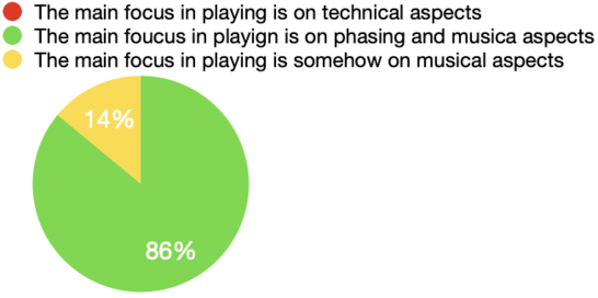 - 6 people out of 7 mentioned that the main focus in playing is on phrasing. 1 person did not mention phrasing as the main focus point.