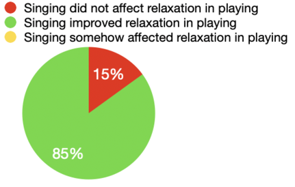 - 6 people out of 7 found that relaxation in playing was positively affected by the singing after one week of practicing. 1 person did not think singing had an impact on relaxation in the playing.
