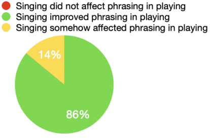 - 6 people out of 7 found that phrasing in playing was positively affected by the singing after one week of practicing. 1 person found that singing unconsciously had an impact on the phrasing in the playing.