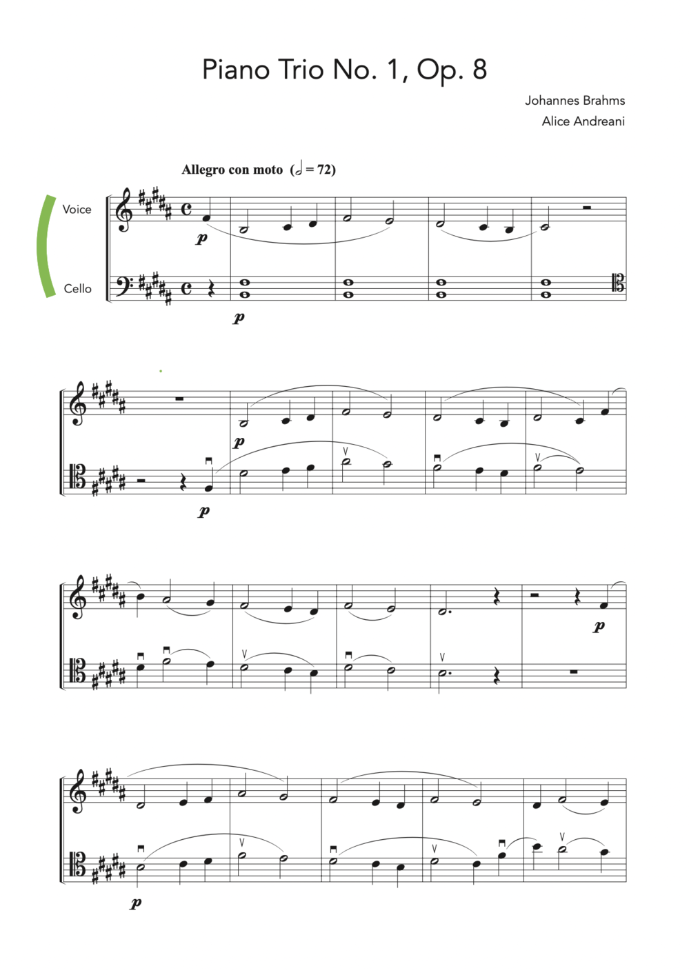 To test if my assumptions and perceptions are shared by others as well I have run an experiment; I have asked 7 cellists to practice an excerpt from the opening phrase of the first movement of the Piano Trio No.1, Op.8 by Johannes Brahms, singing and playing for one week.
