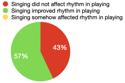 - 4 people of out 7 found that rhythm and sense of pulse in playing was positively affected by the singing after one week of practicing. 3 people did not think singing had an impact on rhythm in the playing.