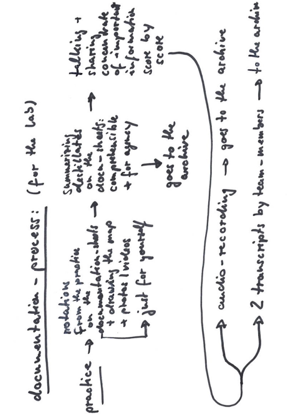 Draw a map. Draw the paths you are going during the experiments/scores on the map. Sketch important places / moments / encounters, use words if necessary. Take a photo > out of the practice / after the practice. Make a video > from within the practice / after the practice.