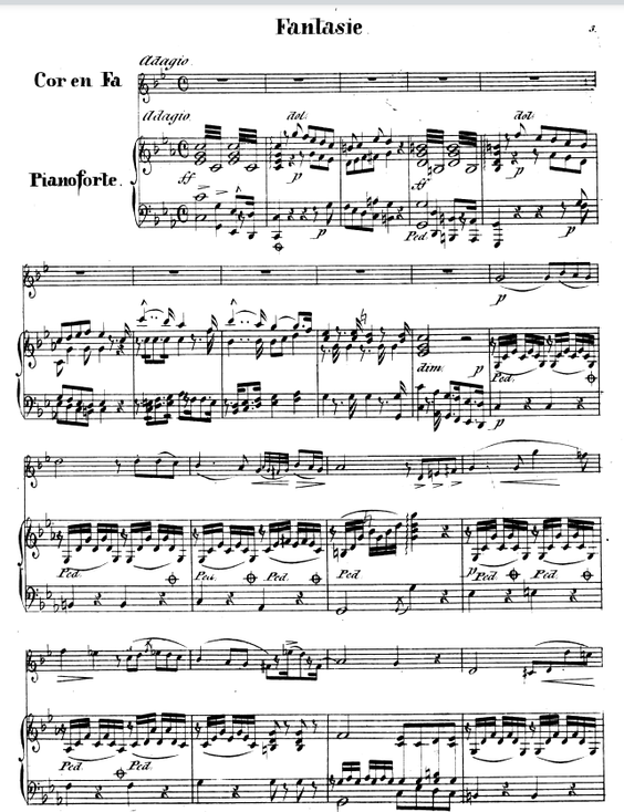 Though Franz Strauss did not write any treatise or Hornschule, he composed two concertos for horn and orchestra, some pieces for horn and piano, and a couple of exercises, both for Ventilhorn and for Waldhorn. I also think and in another research I could prove that he wrote one of his first works for the natural horn. The Fantasie op.2 is completely playable on the old instrument, though it has some tricky spots, but at these places he uses them as perfect effects that support the musical message. The exercise collection and this piece mean that he played first on the hand horn, and it was important for him to be master of it too.