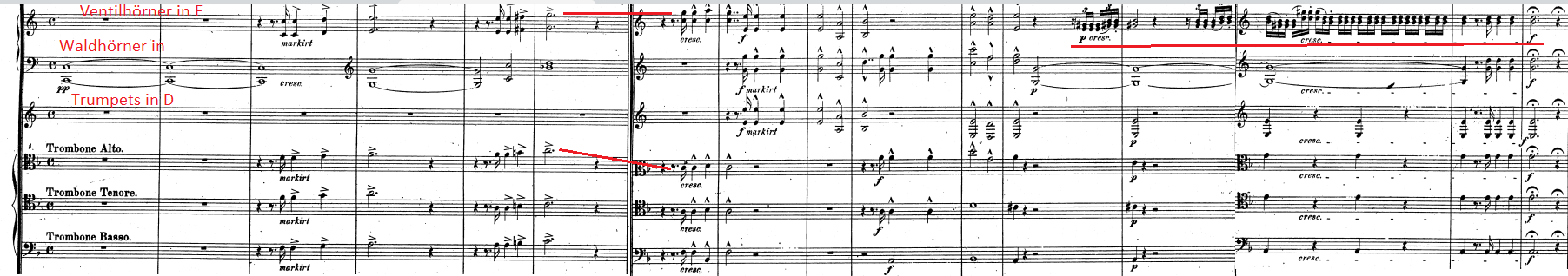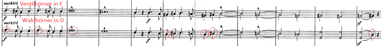 Although there are more changes in the piece, than only the horn parts, it shows us how Schumann’s instrumentation for the horn section changed with the use of the valve horn.