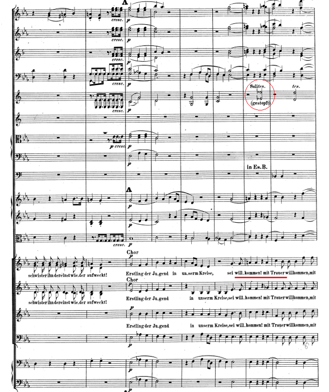 Another proof that the gestopfte notes were important for Schumann too if it could better emphasise the music. At the beginning of the Requiem für Mignon op.98b, the choir sings: