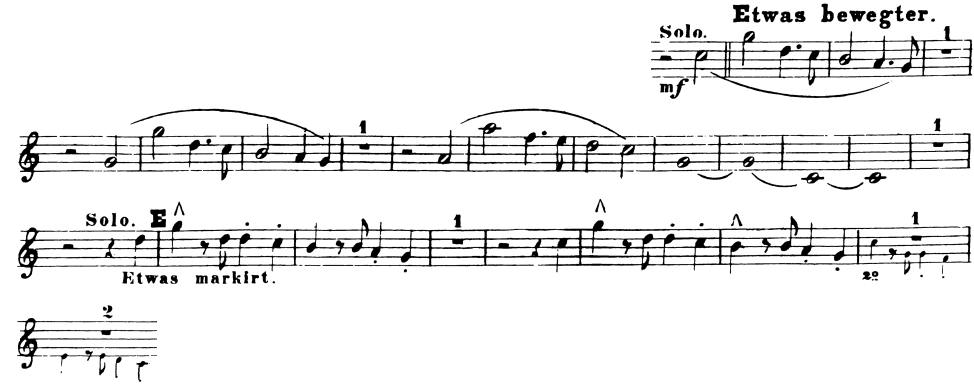 The last noteworthy place front he movement are the second and third last bar. Here only the two valve horns play ‘against’ the orchestra. The minor third is kind of a last sigh, with the Ventilhorn, it is possible to play it dramatic, and not too direct, but still with an open sound.