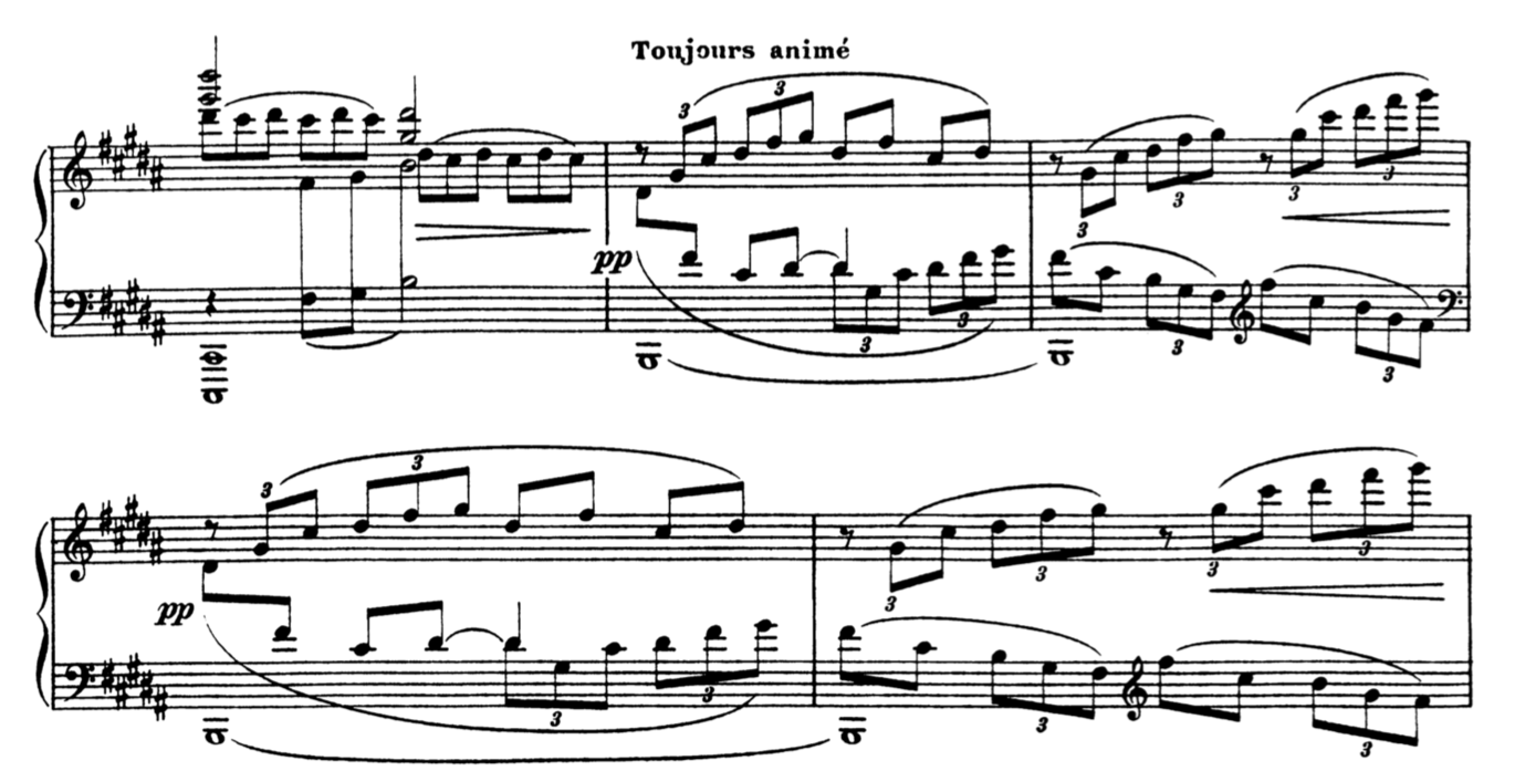 Toujors animé is a good section for understanding how helpful it can be for a pianist to dissect and isolate the musical material in order to understand how to balance a highly contrapuntal passage and have a clear idea of what they want to stand out.
