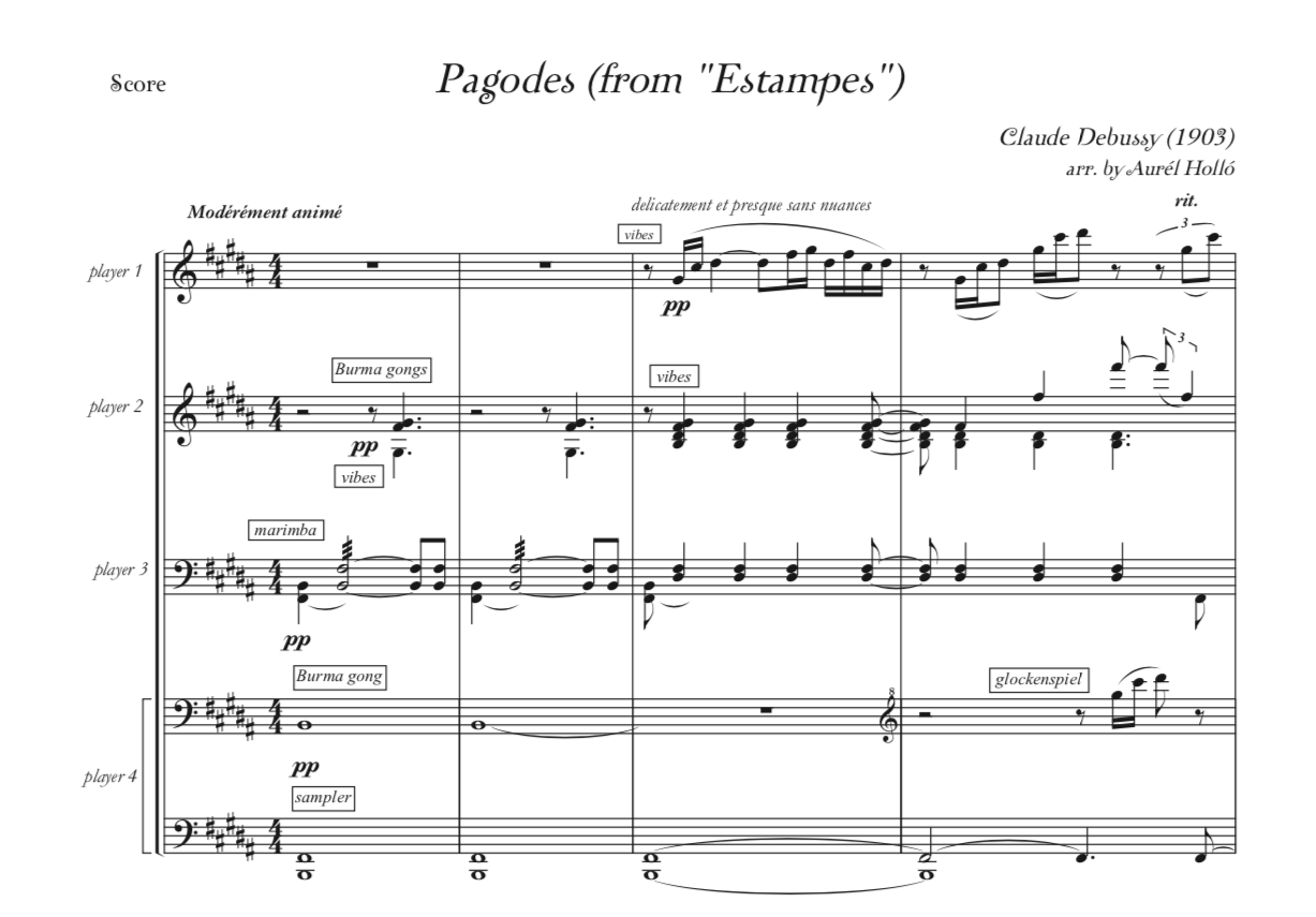 Aurél Holló’s transcription of Debussy’s Pagodes (from Estampes) for percussion quartet