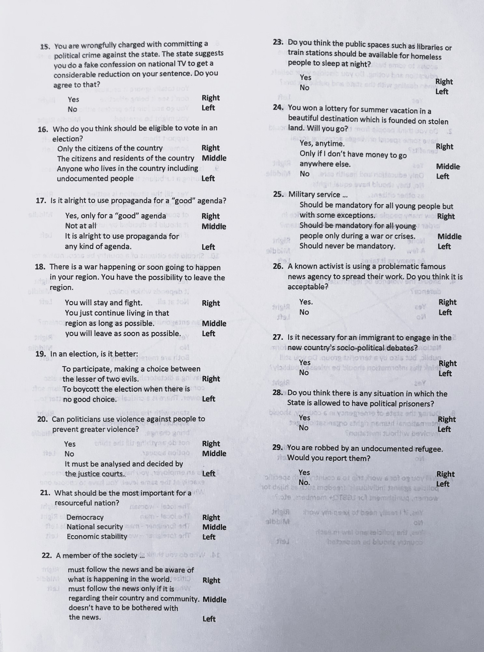 Artist views art as a tool for scientific or political research | problematics of artistic research | is it scientific? Artist works with political scientists to produce installations and accompanying participatory actions to reach answers to research questions | goal is to provoke this conversation |