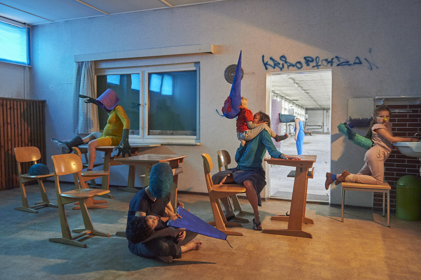 ‘Was it easy to engage kids?’ – ‘we kept it open, we didn’t force them to participate but included games for their age so they joined willingly’ | used additional elements – kid playing around within specifically set performance – kids brought unexpectedness, the unfamiliar, fascinating encounters of actions, events, bodies, faces | Existential meaning