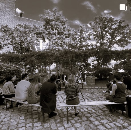 [Artist initiated a garden; university delayed approval of the project | students started joining | they chose to have plants that do not grow in Germany; that arrived in the country years ago due to colonialism, world trade etc | immigrant plants – supporting the frame; more-than-human factor, in search of ‘re-forming’ connectivity in the unfamiliar’ |Student number grew - cooperative management of garden – everyone contributes and co-designs | cooking and eating together also used to reinforce connectivity