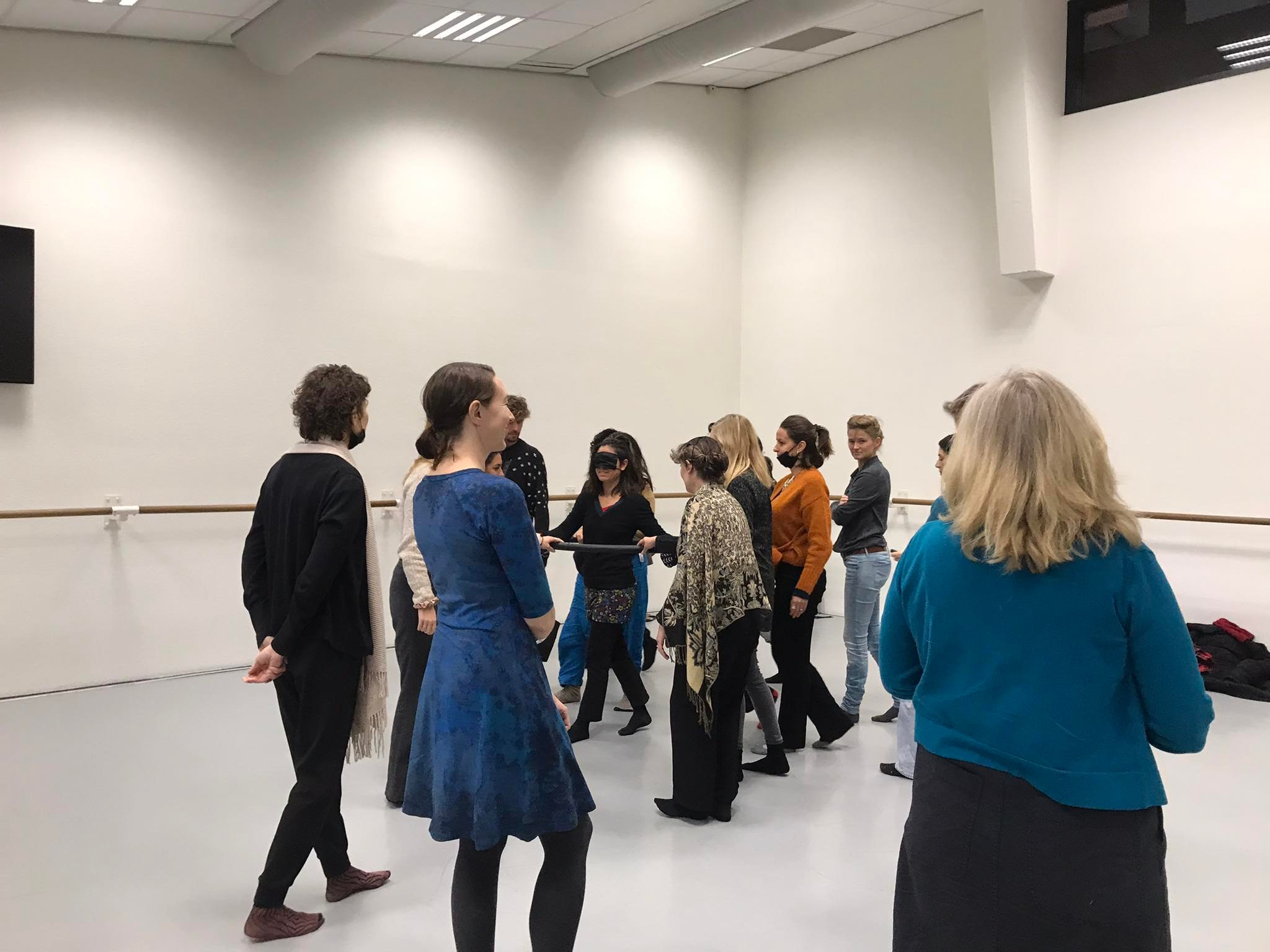 - Group moves around the studio in different speeds with leader blindfolded in the circle