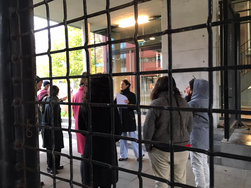 After a small break I believe we were still pretty much on schedule to arrive at the presentation by Walmeri Ribeiro. We gathered in the column-room with a kind request to bring our coats, as we were about to go outside. Firt, we were introduced to the Sensitive Territories project, of which Walmeri is coordinator and artist-researcher. Faced with the current global climate crisis, especially within the Brazilian context of colonisation and excessive exploitation of natural resources, the Sensitive Territories platform was created in 2014 to connect artist-researchers, graduate and undergraduate students, scientists, environmentalists, and local communities across Brazil to investigate and propose different modes of co-existing and co-creation between human and nonhuman entities, through ethical-political and participatory ways of making art. Operating within this context, Walmeri is inviting us to take part in an immersive experience.