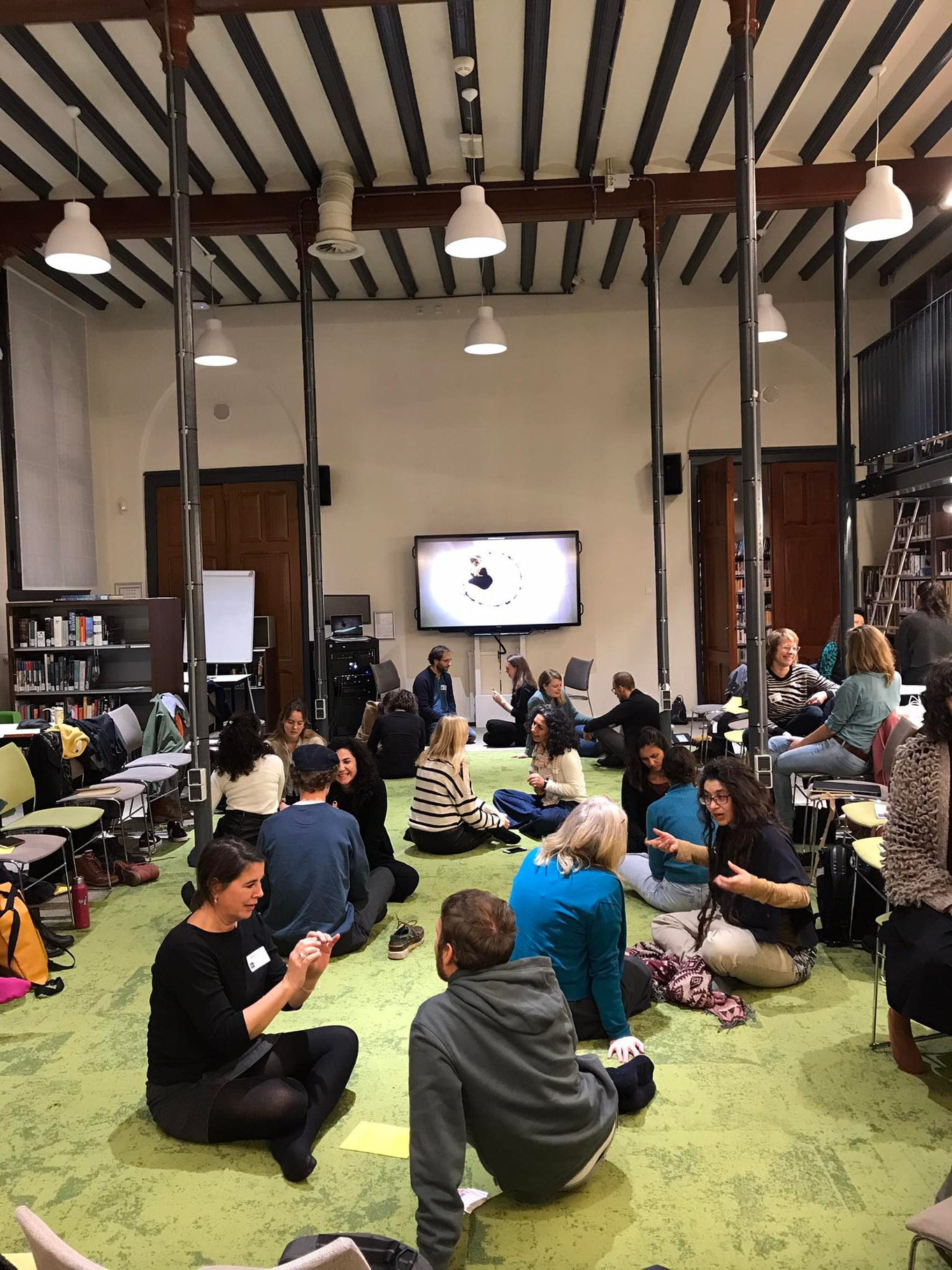 [Shoes off - circular seating arrangement on the floor]