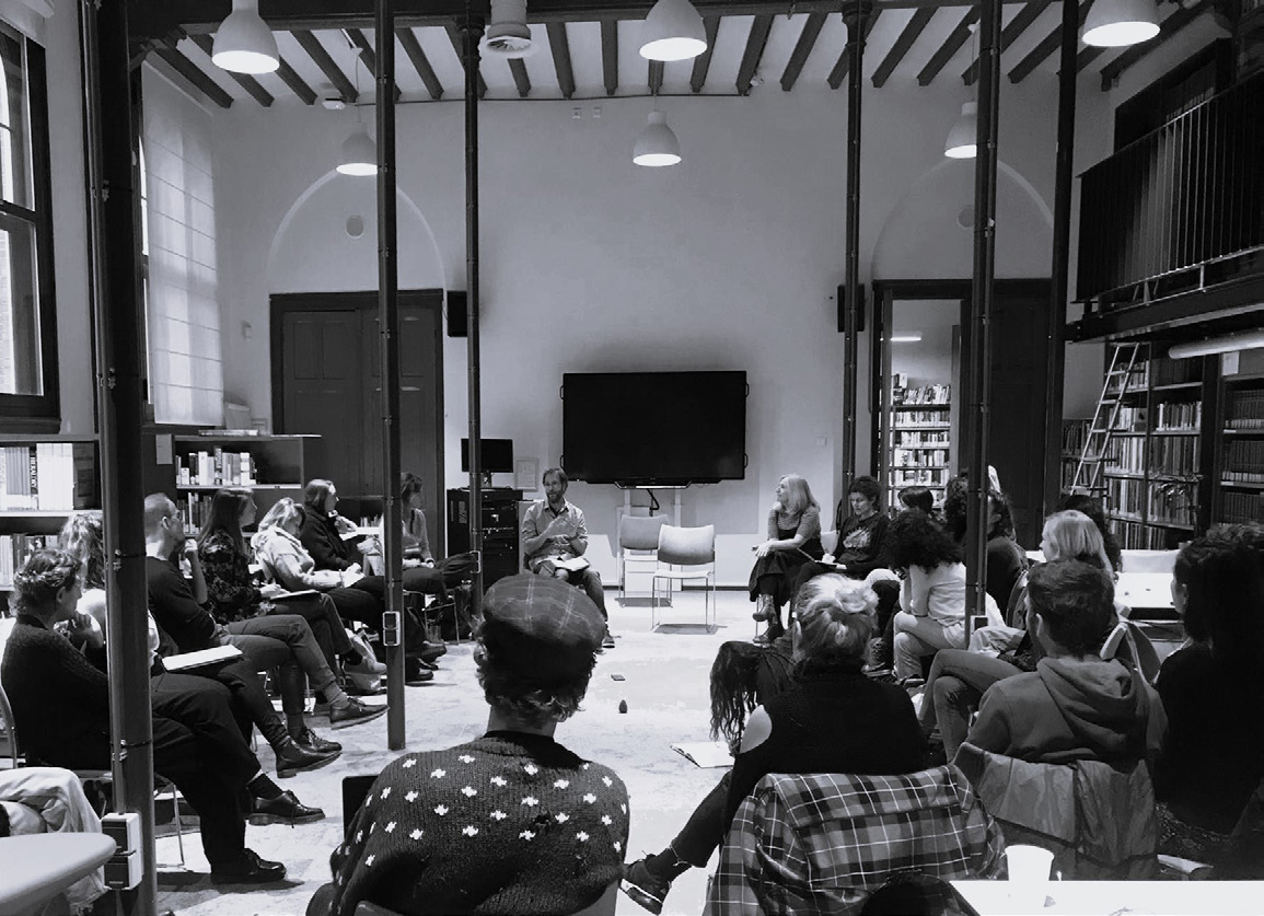 In this documentation, we bring two modes of writing together. Throughout, you will find Juriaan's more descriptive and interprative form of writing on one side, in response to the sessions on day 1 and 3, with a specific focus on the concept of artistic connectivity. On the other side, you will find Xenia's observations on each day's sessions in a script-like format. For each session which took place on day 2, we have included text from the programme book, written by the respective contributor.