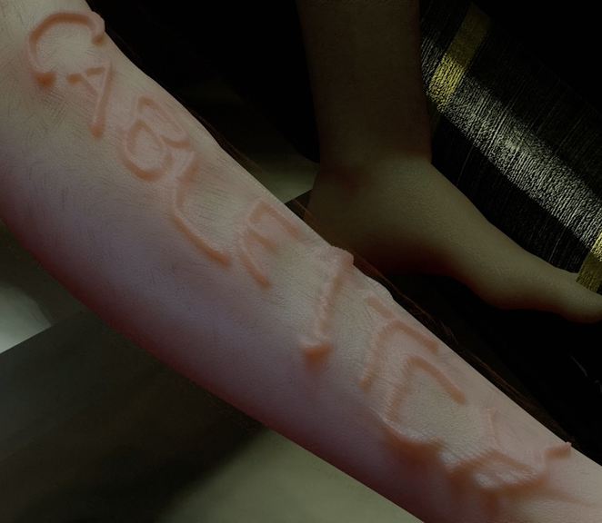 The abject also takes form inside saturated realms of bodies (corpses or digital copies) that are all experienced remote from the sensational experience of the sensing body’s own corporeality. I have been considering the relation between the horror genre and the abject and whether this obviously close relationship (the gore, the excretion, the breaking of rules and borders) is fading out in the High Definition rendering of all the mess and gore into perfect simulations of abject matter. The blood spatter that prettily twirls from the smashed skull in model simulation of liquids parting and merging, forms a pleasant computer generated choreography of something that was supposed to come out unruly and staggeringly non-pretty. In the process the unruly is ordered and the sensation of abjection disappears, in the sense that there is no bodily understanding of that blood as mine-yet-not-mine. The same can be said of the wound. The shallow poly triangle geometry of perforated skin, perfect in its distribution of pores and body hair, looks real to the point where one can no longer relate to it, as corresponding to one’s own. Non of us are this perfectly distributed, color corrected, tight and easily opened up.