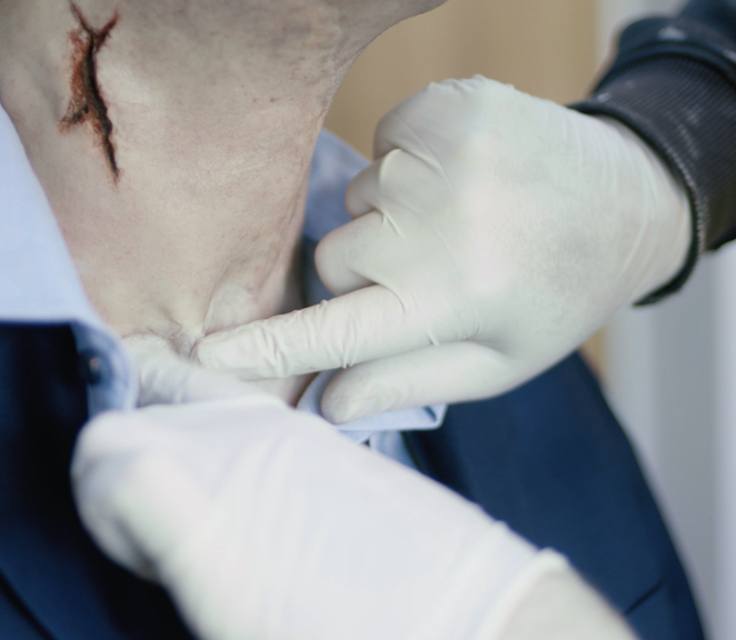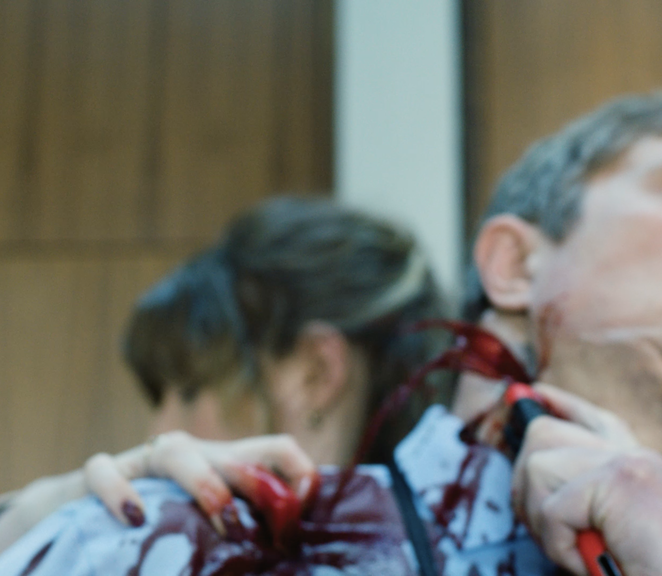 In Oceanic Horror I have been working with CGI bodies and objects that are unmistakably not real, deliberately trying to toy with notions of how CGI reality is supposed to look and from the distortions of this, perhaps rejuvenate the notion of the abject; a breaking down of meaning between object and subject in the distorted translations between corpse and corporality. I have also been working with the mechanics of the special effect, in which actual fluids and objects are utilised in contrast to virtual effects that only exist in the digital. This is a choice based not only on how the non-virtual special effect has an almost sculptural feel to it, that possibly could reconnect to that abject sensation, but most importantly in how the two differ from one-another temporally. Where the virtual effect comes into existence in post-production (added-on after the fact), the special effect is bound to the moment of production. Blood squirts now, in this very moment, and is caught on tape together with everything else occurring.