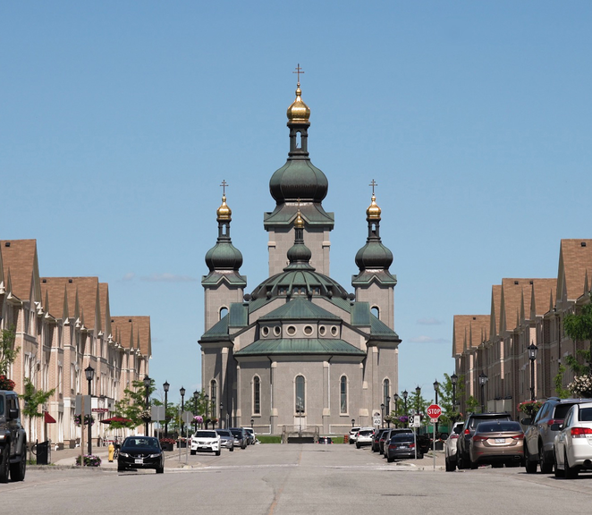 You are walking the streets of the corporate township of Cathedraltown, Ontario, Canada.