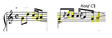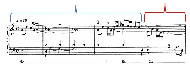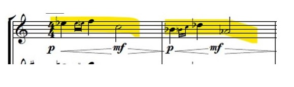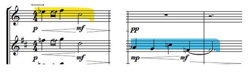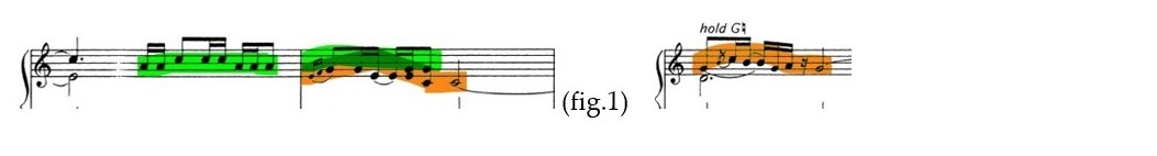 How showed in the next example, in bar 3 of the piece, I introduce the response to the previous melodic cell;