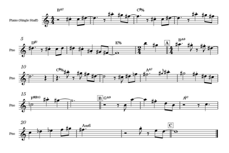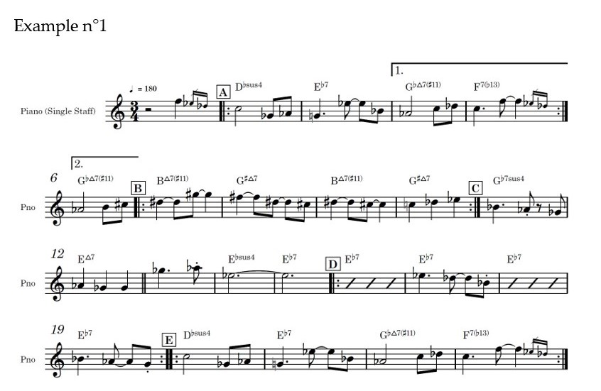 Harmonically I decided to use the already mentioned composition technique “direct transition”, used from Keith Jarrett and Claude Debussy.
