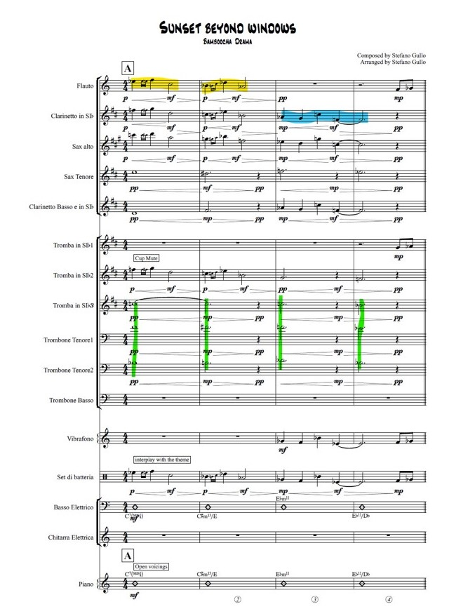 During the orchestration phase I also took into account Jarrett's musical philosophy; as explained in the previous chapters, after the experience with the Miles Davis group during the late 60s, Keith began a campaign against the advent of electronic music.