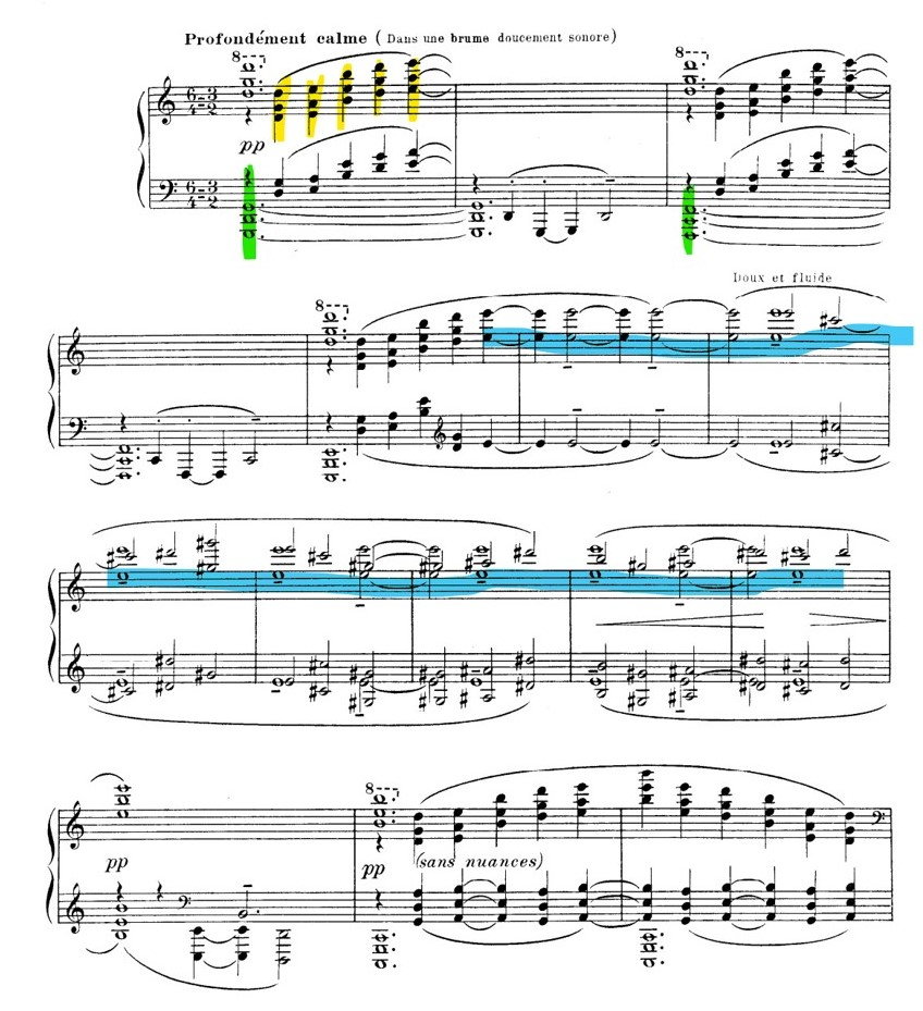It is interesting to see how this piece by Debussy is so similar to the concert in Köln, both immediately create a suspended environment with the harmony, if you notice the left hand of the Cathedrale engloutie has the same voicing as Jarrett's left hand at the beginning of his improvisation and both build a theme built of pentatonic scales which combined with a pedal create a tonal center.