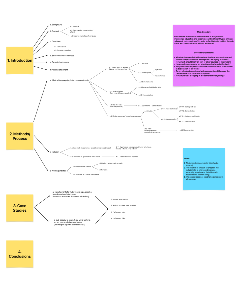 In the following pages, I have gathered ideas, reflections, analysis, experiments, scores and audio/video material that, I feel, surmise the work I have done during my studies. However, beyond the tangible elements offered, I believe this content tells the story of my process towards coming into my own practice. As you can see from the work plan I had set for myself at the beginning of this artistic trip (by clicking on the document below), there is a clearly defined structure that serves as a basis for my creative incursion.
