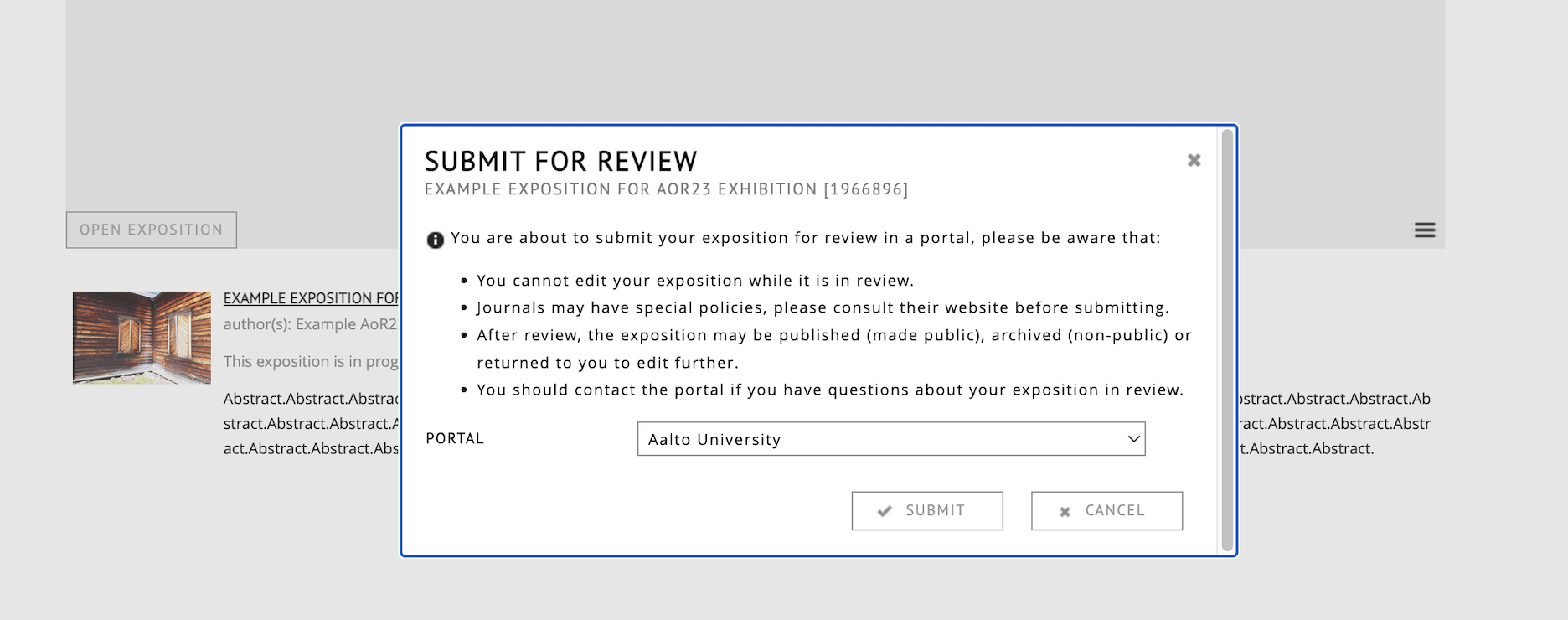 This page gives instructions on how to create and submit an exposition to