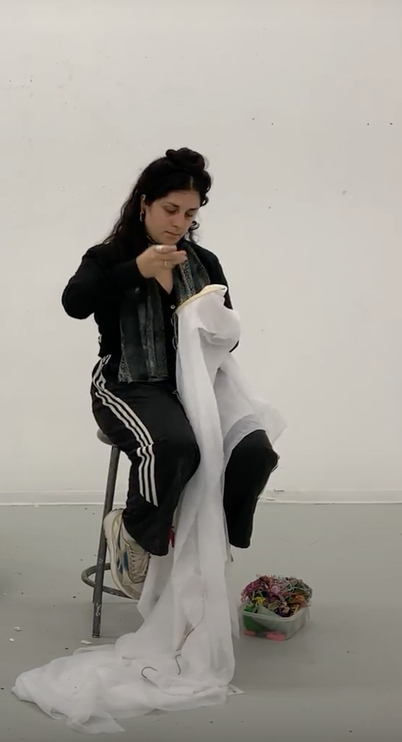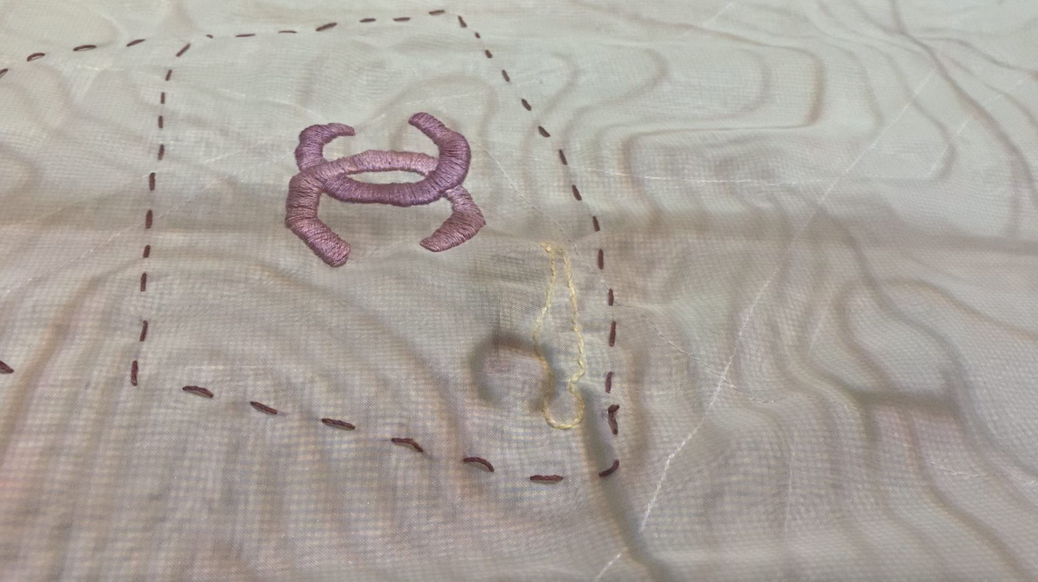 Pour ceci, je me tourne vers des propositions qui mettent le corps, le relationnel, l’émotionnel et le sensible au centre de nos boussoles, sortant des paradigmes occidentaux, binaristes et rationalistes du monde. Adoptant une raison artisanale, je cherche à construire, déconstruire et naviguer avec et au travers de ce qui m’est disponible ; Mes yeux et mon estomac, mes mains, mes fils et mes aiguilles, ma voix et ma mémoire. Mes principales.aux allié.es: Ma mère et ses techniques de restauration de rivières; Gloria Anzaldúa et son autohistoria-teoria comme méthodologie d’auto-connaissance et d’auto-ignorance; Les féminismes communautaires latino-américains et la notion de cuerpo-territorio, proposée à la fois comme posture politique, comme forme sentipensante d’être en relation avec le monde, de résister et de renoncer aux pratiques patriarcales et néocoloniales; Karen Barad et sa proposition éthico-onto-épistémologique (oui ça donne mal à la tête) comme plaidoyer pour la reconnaissance d’une l’intra-action qui admet la force d’échange et de transformation que contient la relation; puis Édouard Glissant, le droit à l’opacité et sa philosophie de la Relation, comme formes d’embrasser et de célébrer le divers, comme invitation à la créativité et à l’écriture, à l’imaginaire, à la résistance et à la rencontre.