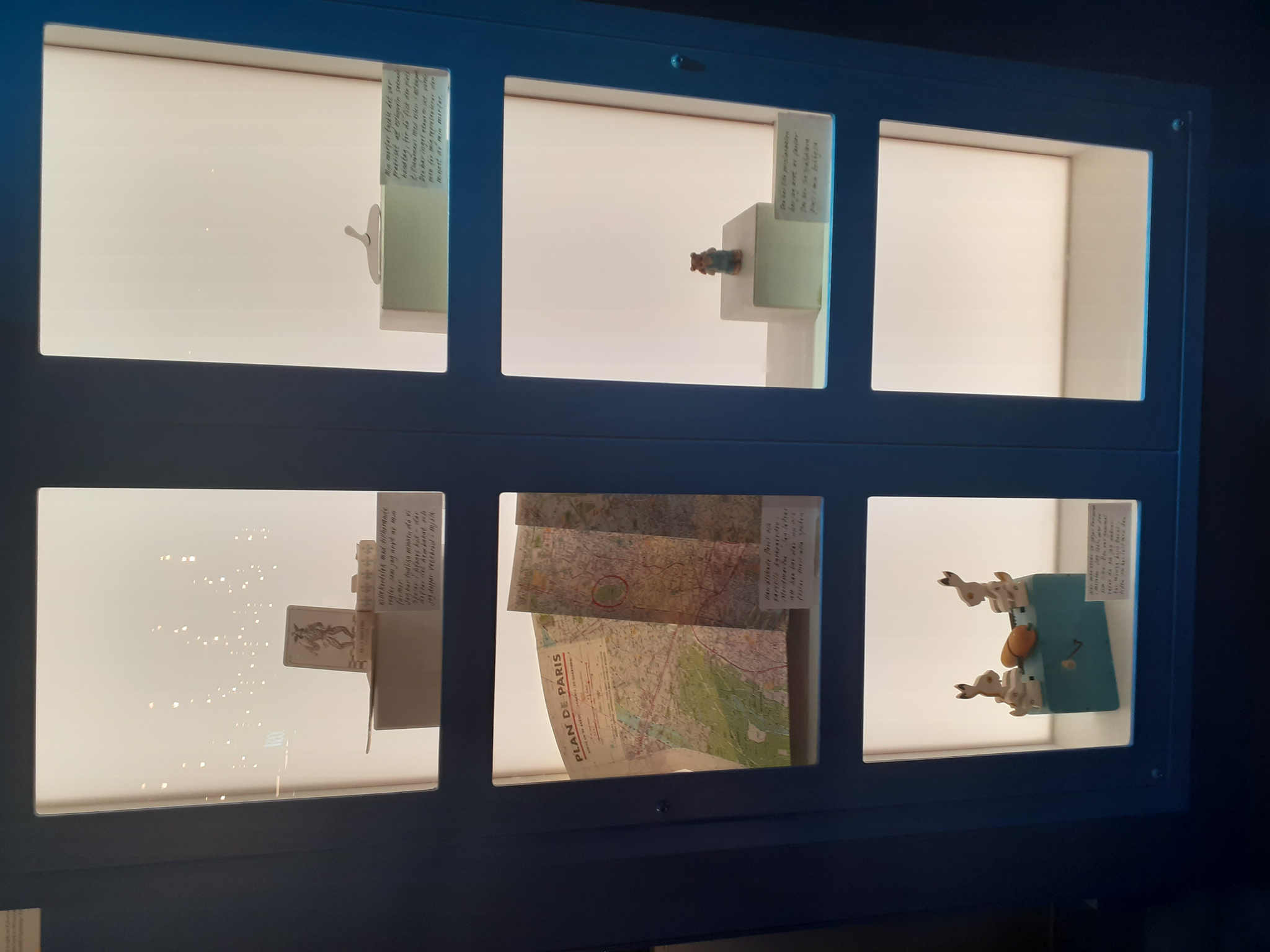 On the left: Artwork from one of the exhibitions at the Museum of Contemporary Art, Skopje, North Macedonia, July 2024.