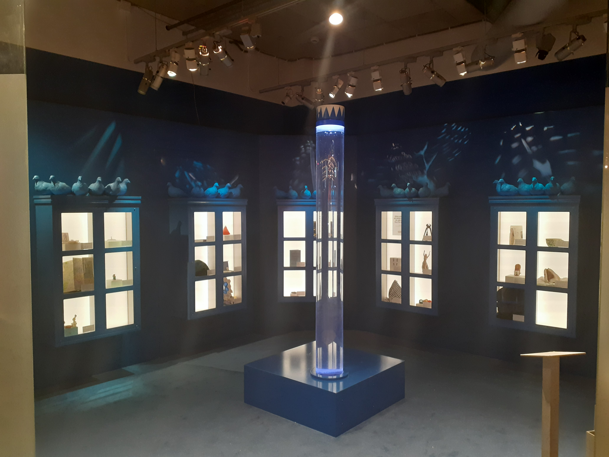 From right to left: Five showcases with five objects - Art Installation, The House of Culture, Stockholm, October 2024.