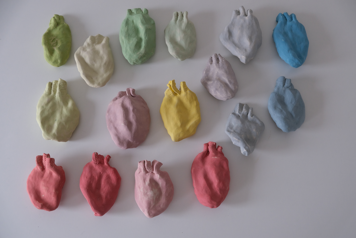After the colors were mixed, I painted the wet sculpted ex-votos. Afterwards they have been fired at high temperature(1200 degrees).