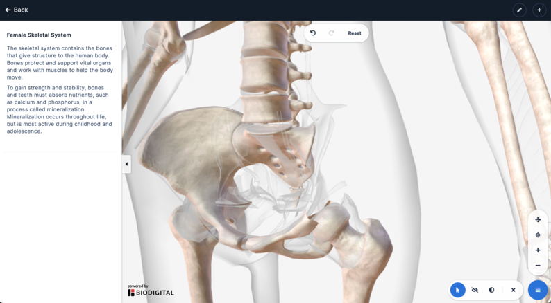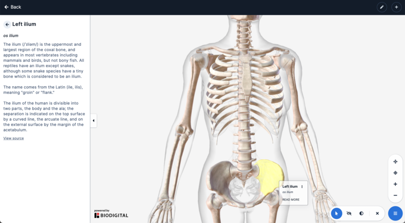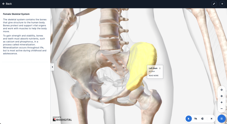 Atualmente, a representação gráfica do corpo humano continuam a ser um material de apoio importante para o estudo da anatomia. Os softwares de visualização 3D (figura 4) podem substituir ou complementar as versões em papel dos Atlas, possibilitando o início de uma viagem interativa pelo interior do corpo humano. Através da manipulação do cursor é possível girar o desenho de forma livre e observar de diversos ângulos os sistemas funcionais, destacando os seus respetivos componentes e a informação teórica. A navegação no software é bastante intuitiva e permite executar um conjunto de ações como retirar camadas, identificar estruturas e eliminar componentes, promovendo uma experiência de dissecação virtual do corpo.