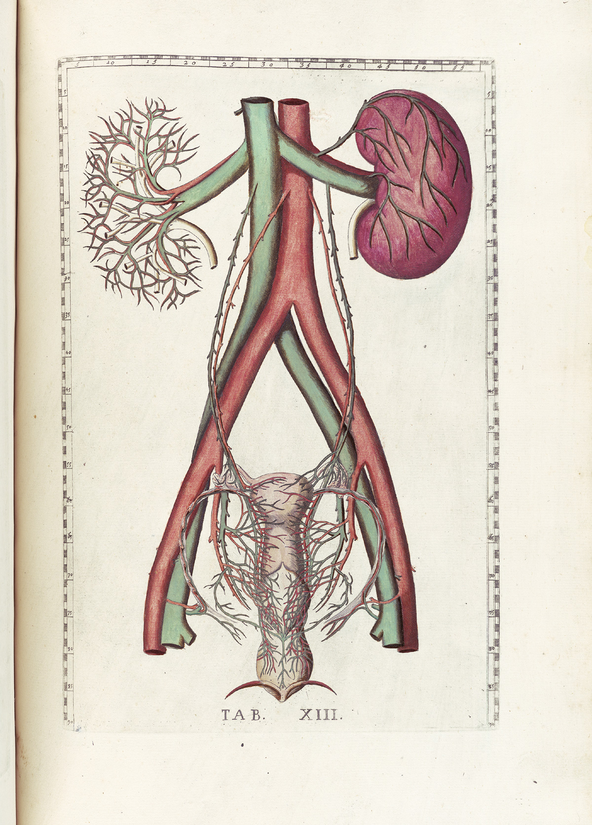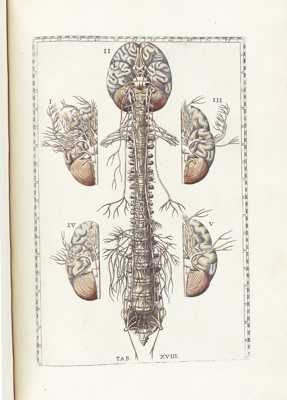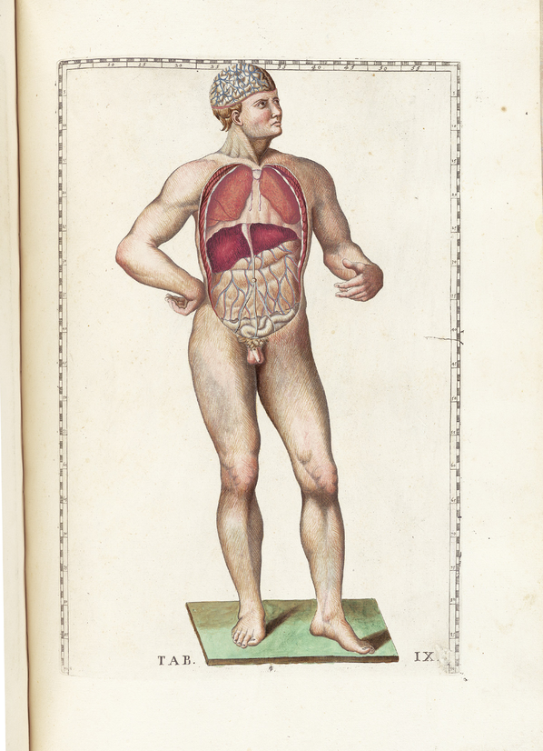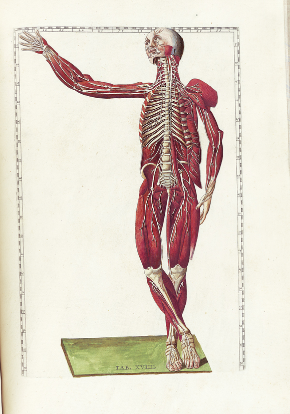 O estudo da anatomia é amplamente explorado no século XVIII através de um conjunto de obras ilustradas com representações excepcionais, entre as quais se destaca a Tabulae sceleti et musculorum corporis humanio do professor de anatomia e cirurgia Bernhard Siegfried Weiss, também reconhecido por Albinus (1697- 1770). Nesta publicação os desenhos gravados em placas de cobre representam com grande detalhe a miologia e a osteologia do corpo humano, destacando o grau de verossimilhança entre a natureza das estruturas anatómicas e a sua respetiva representação. Este exemplar, amplamente copiado e difundido, contribuiu para aproximar e legitimar a importância do desenho no contexto da representação científica da anatomia.