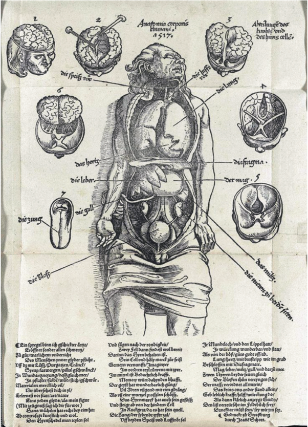 A evolução da cirurgia e a análise dos procedimentos cirurgicos, contribuía para a evolução da anatomia e entendimento do funcionamento das suas estruturas fisiológicas. As representações gráficas que documentam as descobertas levadas cabo no campo da cirurgia, constituem-se como uma narrativa visual na qual se descreve pormenorizadamente as técnicas cirurgicas com o objectivo de comunicar de um modo eficaz o conhecimento que se encerra nas imagens. A numeração das figuras acomodadas de forma sequêncial no plano da imagem, constituem-se como uma espécie de instrução do procedimento em questão.