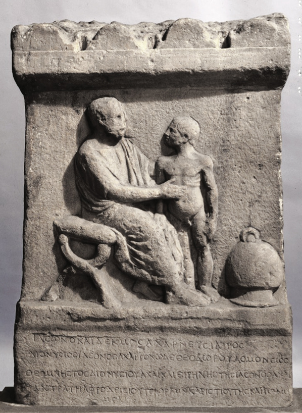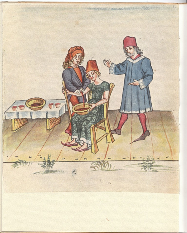 A figura do médico a examinar o abdómen de uma criança constitui-se como um dos primeiros registos que documentam a ação do terapeuta na observação do paciente.