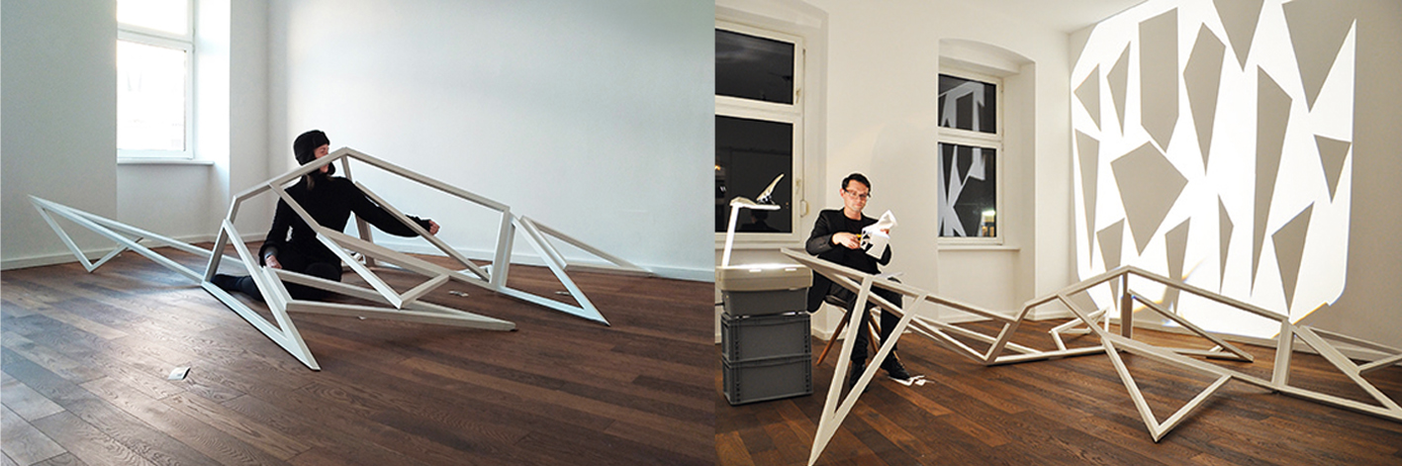 Referencing the animal kingdom, Thomas Ballhausen’s twelve literary texts create an imaginary zoological scenario. Elena Peytchinska’s digital drawings, based on Stomachion, the 14-part mathematical mind game, develop a network—a theoretical animal (Origamion) that navigates the book space through acts of folding. Its lines, understood both as boundaries and extensions of language, interweave with the text as they traverse the book. Literature and drawing enter into a dynamic dialogue—an atlas of language art emerges in a new order. In this way, FAUNA becomes a thinking space to be opened—without compromising the readability of this artistic enterprise. Drawings and text meet as actors on the stage of the book-space.