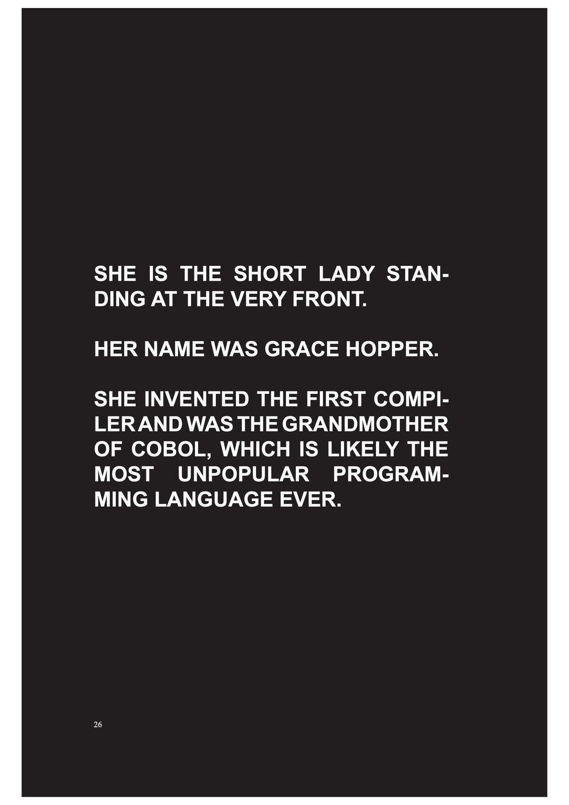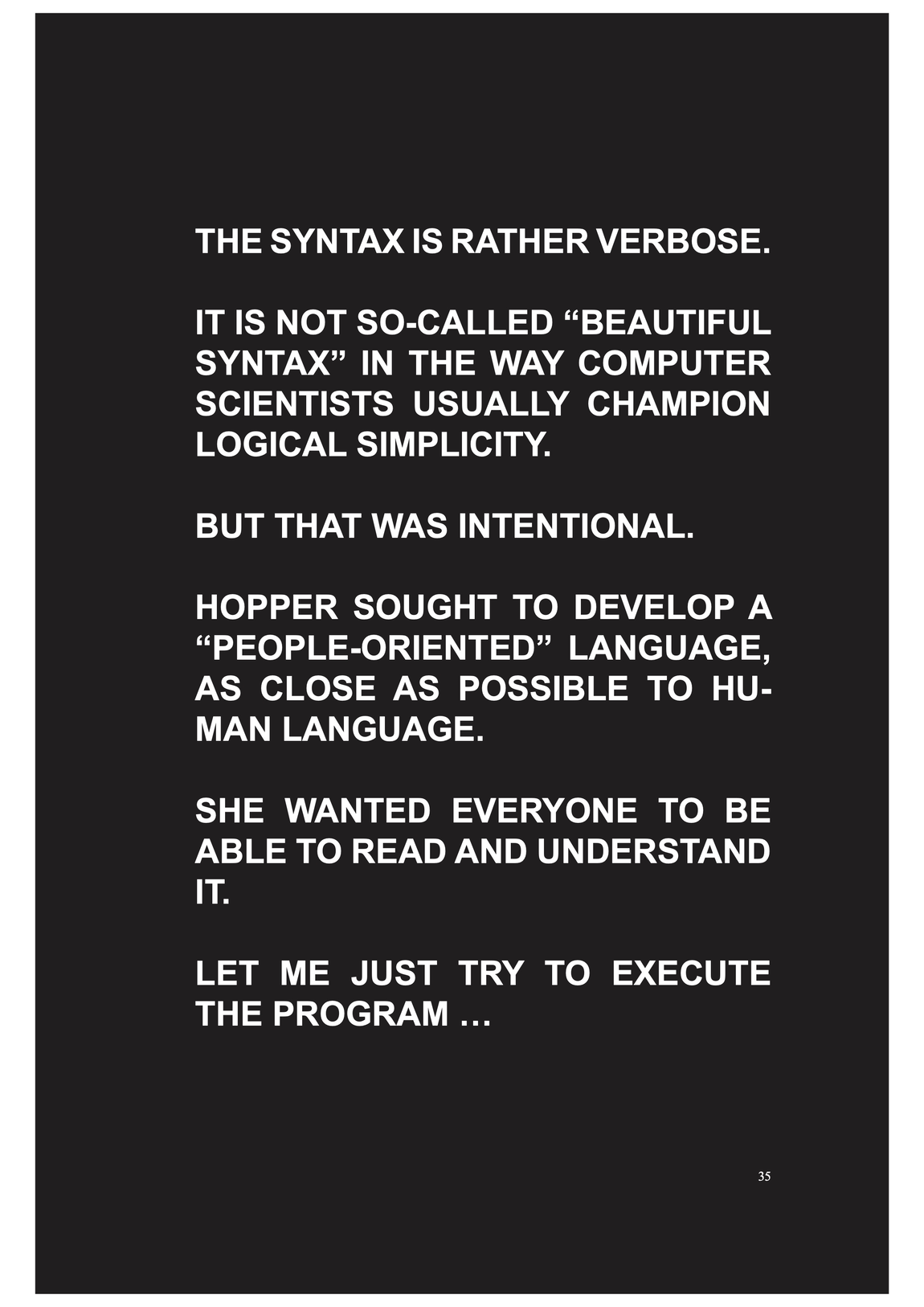 it has people oriented design, to be as close to human language as possible -- she wanted everbody to be able to read and write and understand it