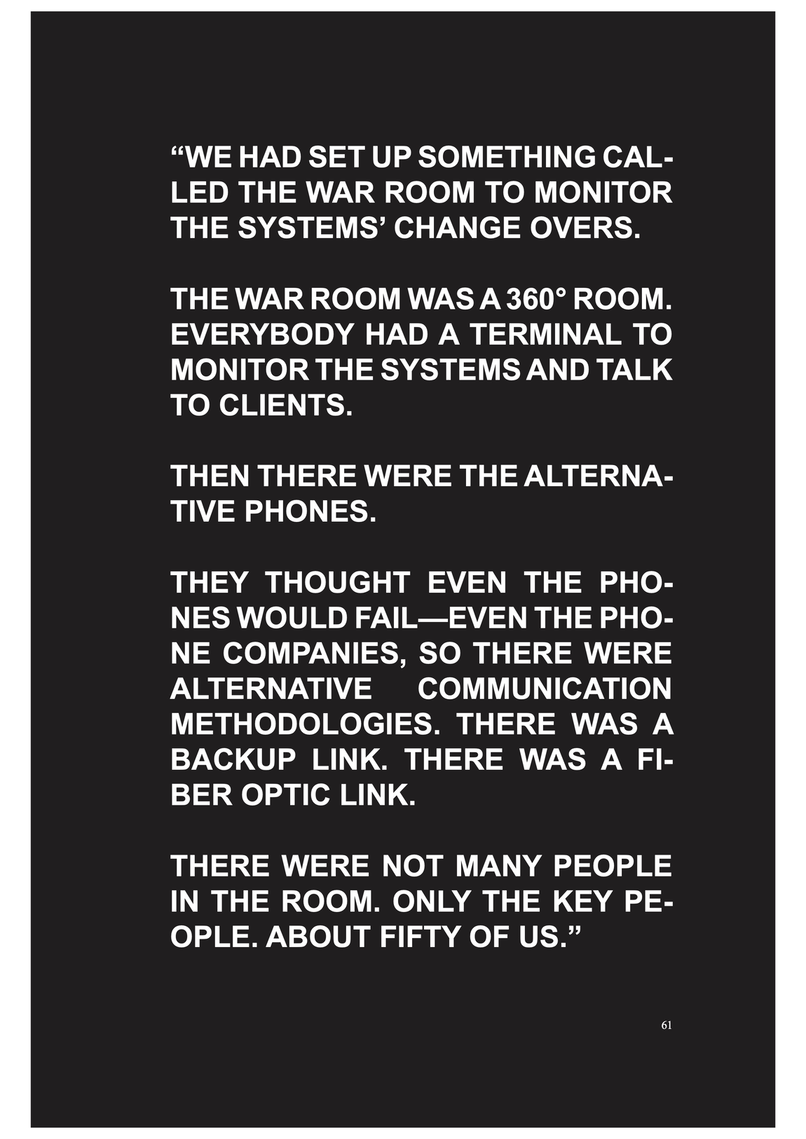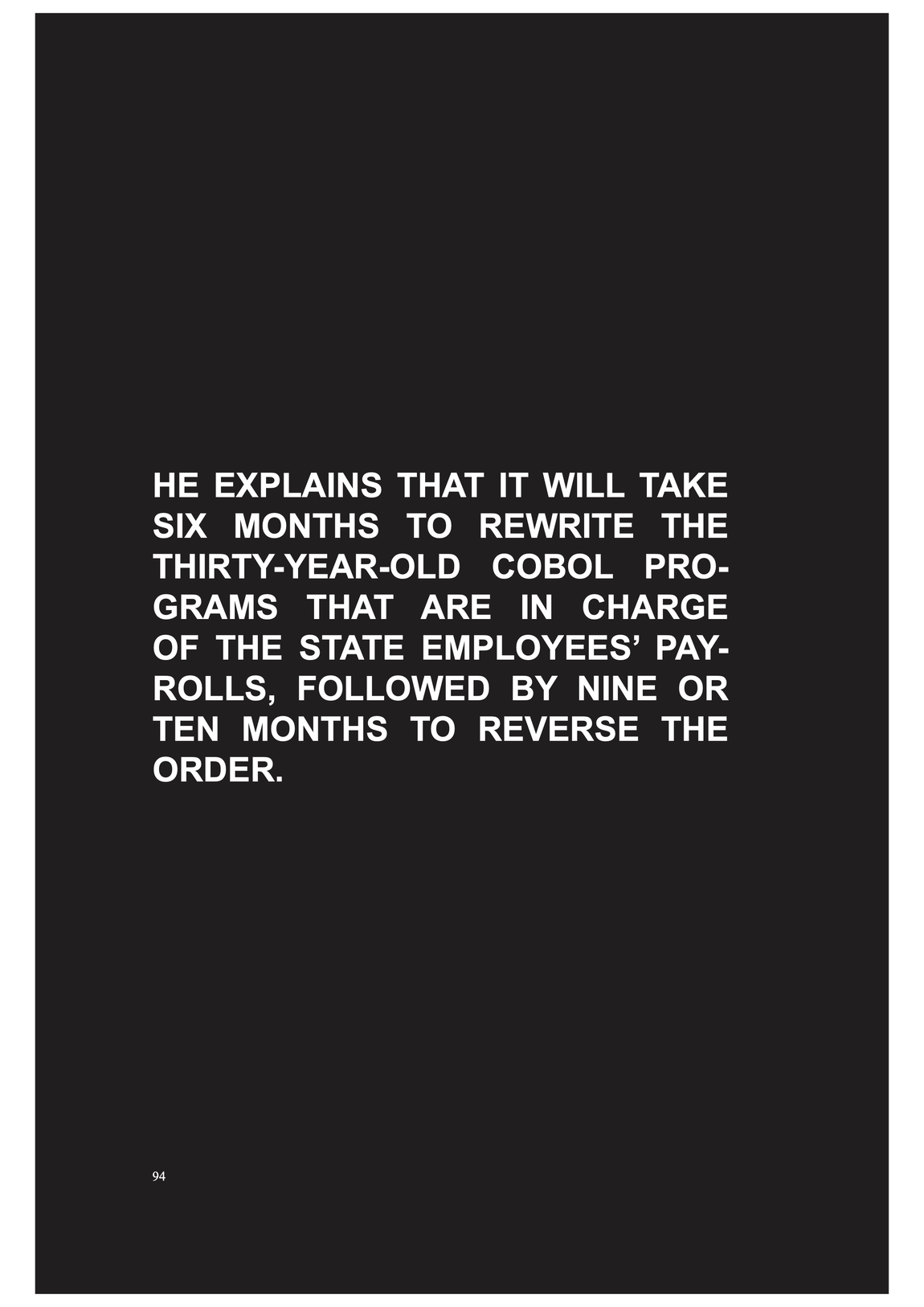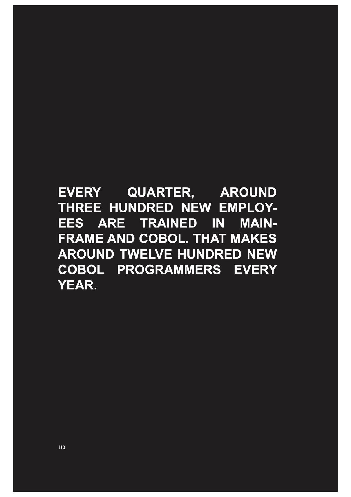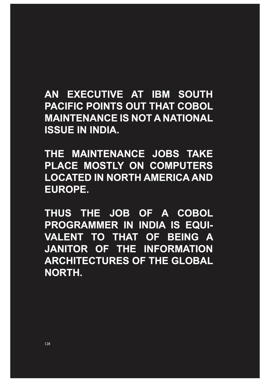 COBOL programms are automatically coordinating, distributing and displacing goods, people and money through the excecution, in a was as enforcement of absolute space as it expands within globalisation -- it is performing the global flows, at least in theory