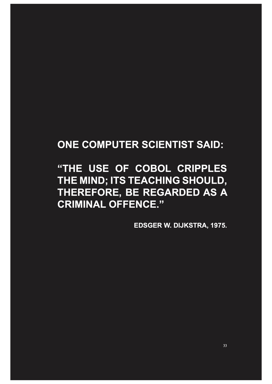 ... and the active lines of code are actually increasing, which is indicating that it is a living language, but still, COBOL is not part of any curriculum in computer sciences, neither in the global North but also not in global South, it's never used to develop a new programme