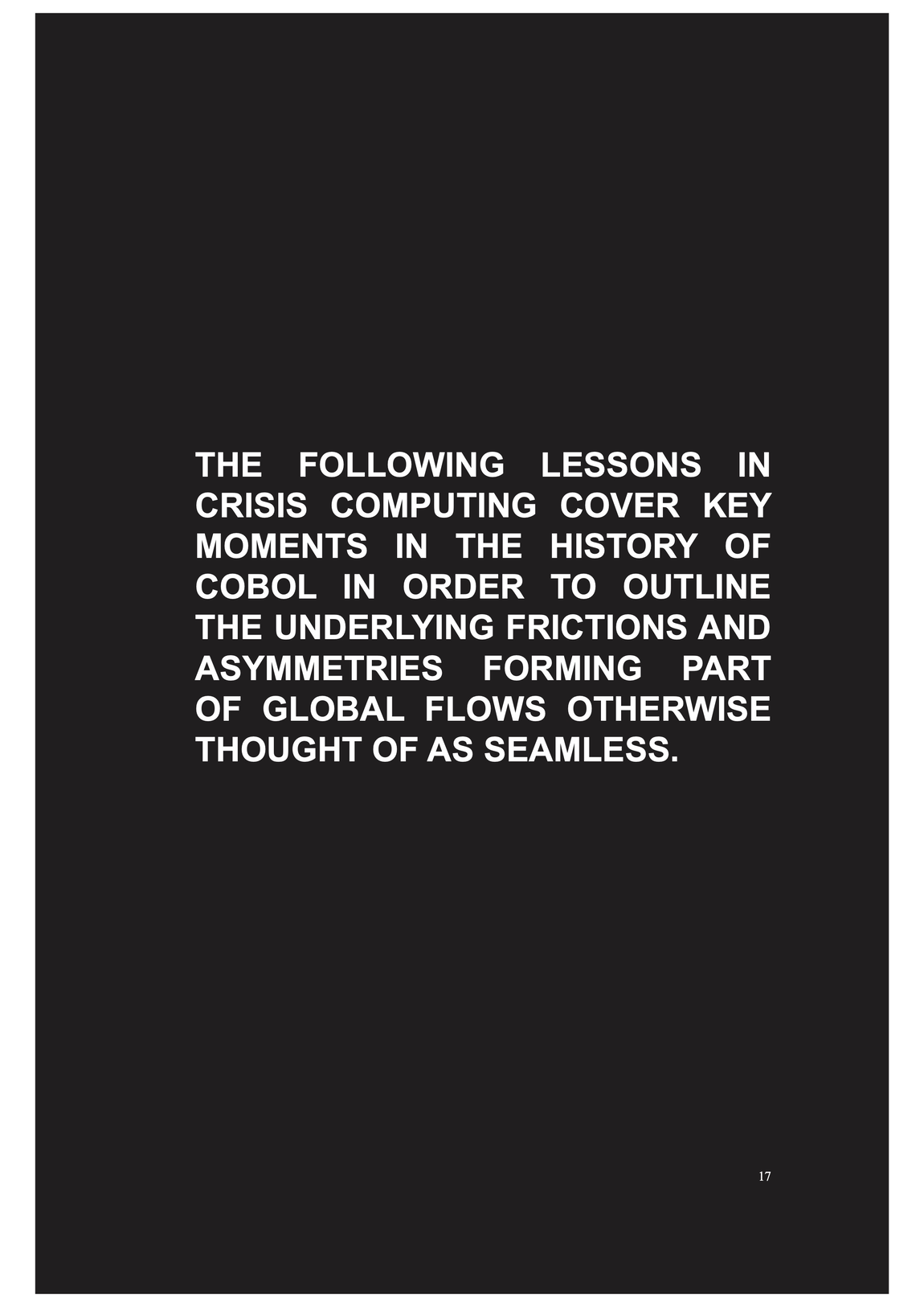 Linda Hilfling Ritasdatter: Spaces of Flaws of Flows: COBOL and the back-back-ends of development, in: Computational Culture—a journal of software studeies