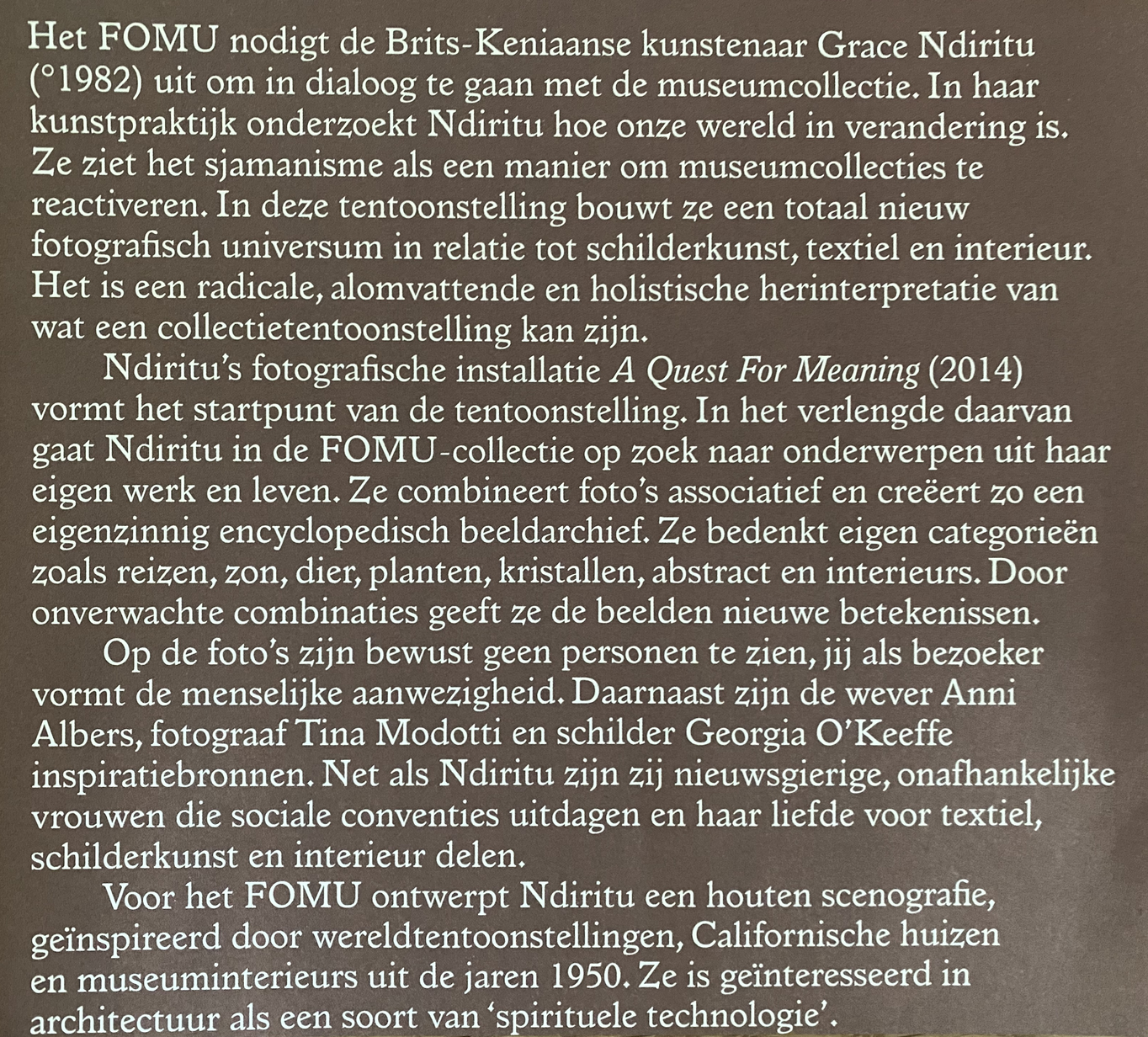 Enerzijds wil FOMU bezoekers aan het denken zetten: hen intellectueel prikkelen en uitnodigen stil te staan bij de gelaagdheid van het fotografische beeld, de geschiedenis van fotografie en de wisselwerking tussen fotografie en maatschappij.