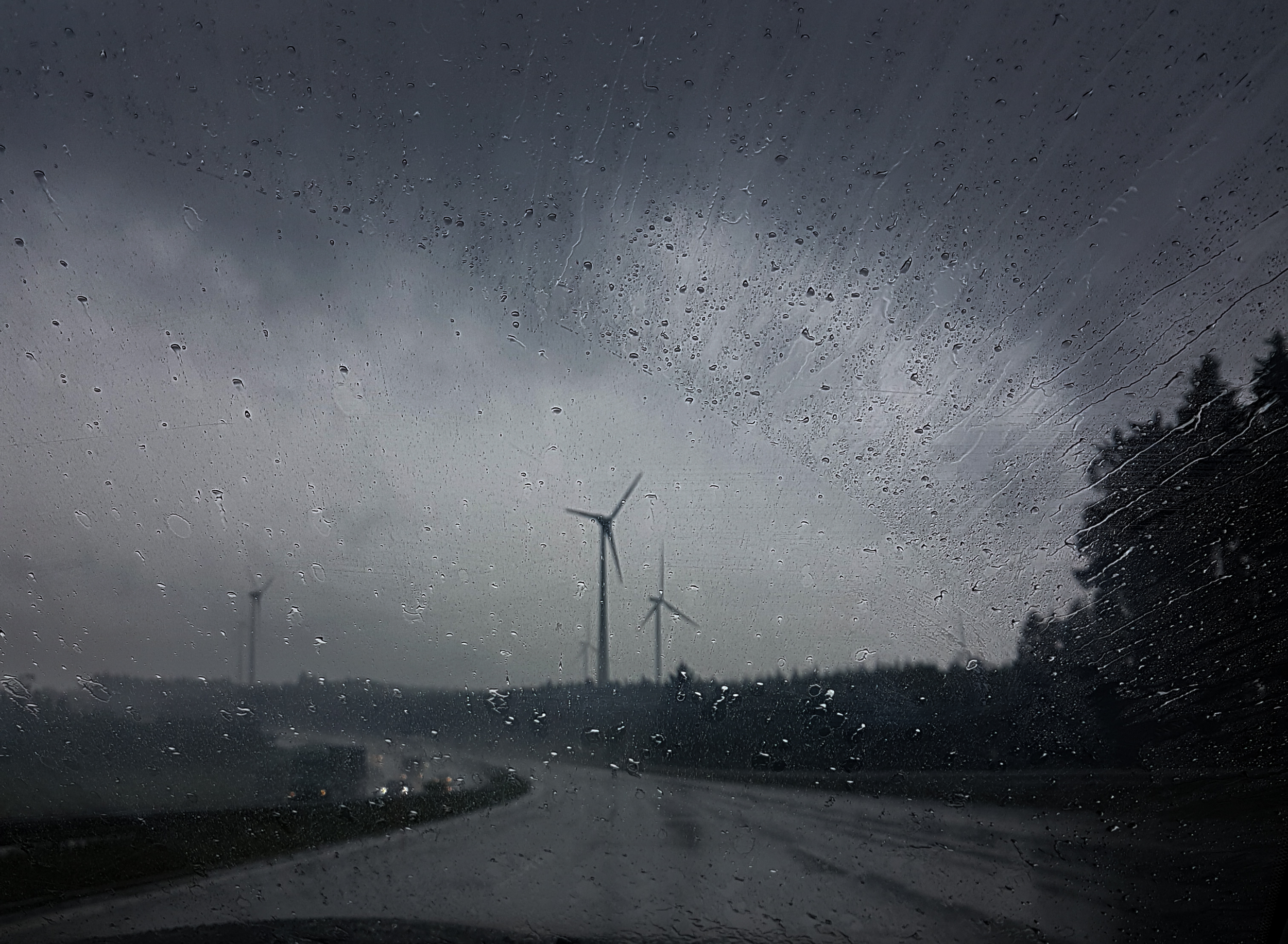 Genom baksätets fönsterruta ser jag döda, påkörda djur längs med vägen.