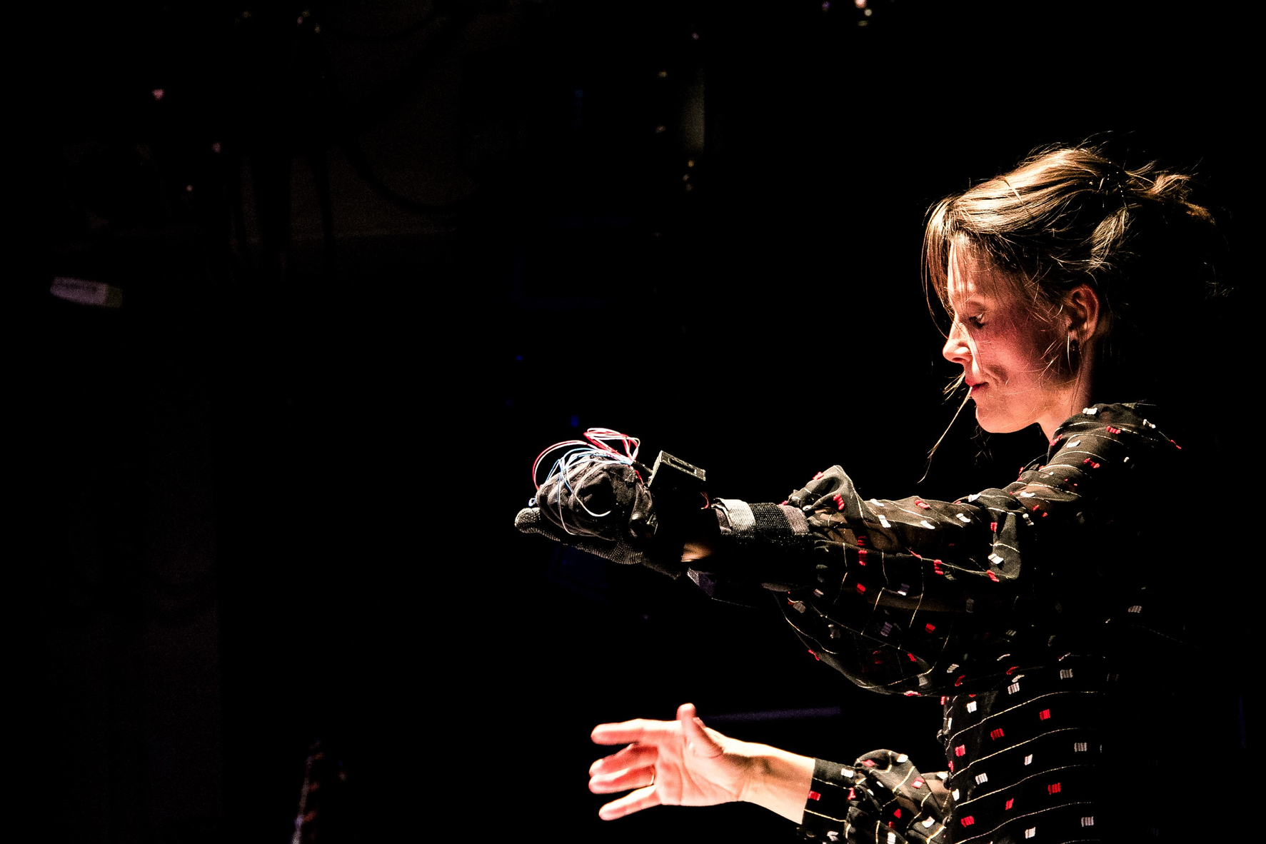 I wanted to explore the glove’s possibilities further, e.g. it’s possibilities for timbral effects on the sound—in a constellation where we would be less bound by the metrical system in notated music, and where our focus could be on exploring the physical and sonic relationship between musicians and conductor. At the same time, I wanted freedom to create and co-create, so improvisation became a natural ground for our new co-composition Hrafntinna, Black Obsidian.