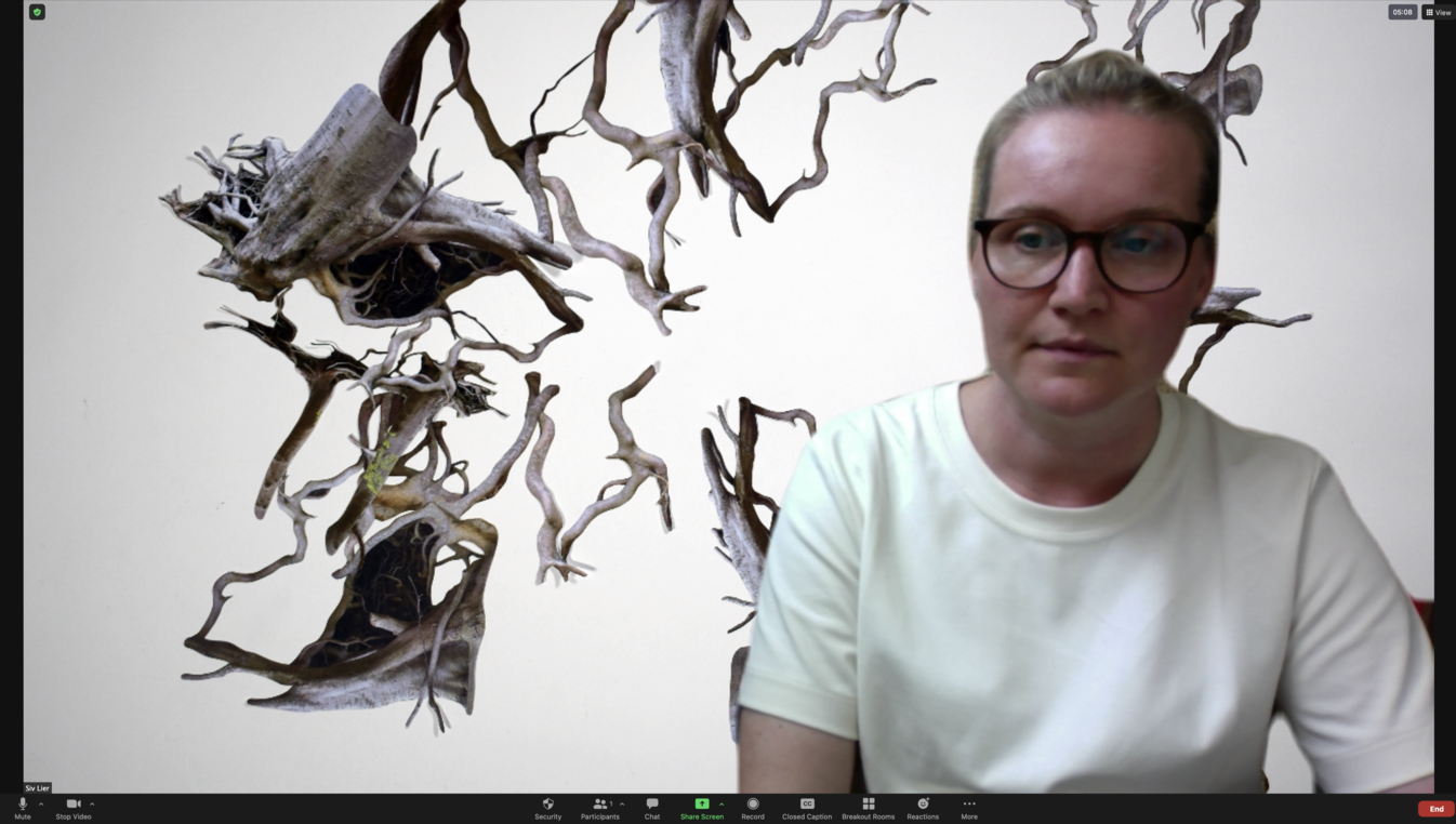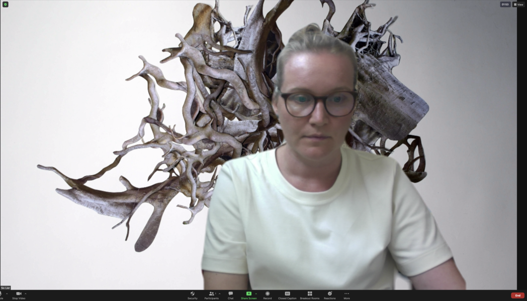 TENKE PÅ LAURIE ANDERSON PRESENTASJON DER HUN BRUKER BAKGRUNN I ZOOM AKTIVT OG VISER FILM OG BILDER SOM HUN ER MIDT INNI. JEG KAN GJØRE NOE SÅNT.