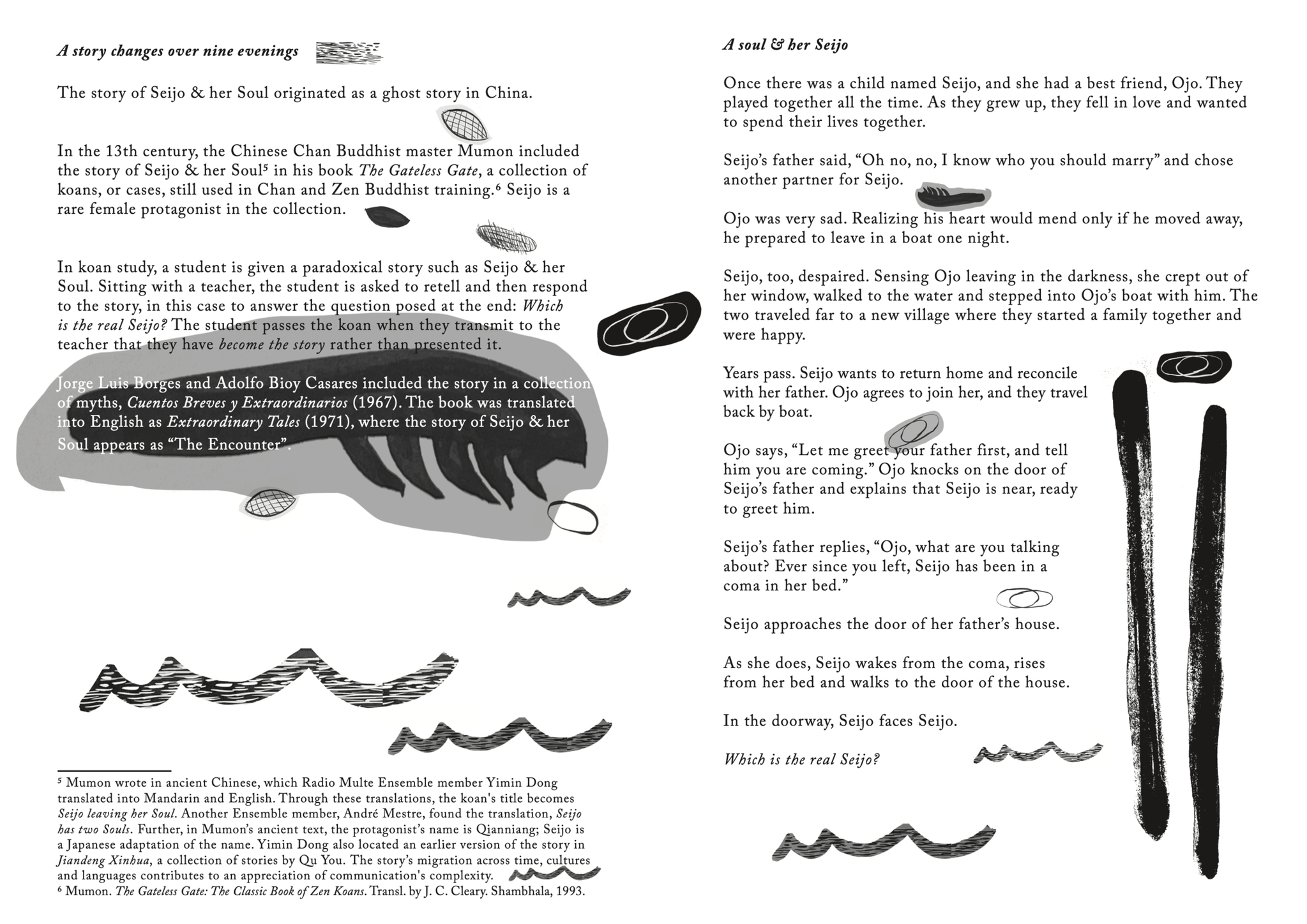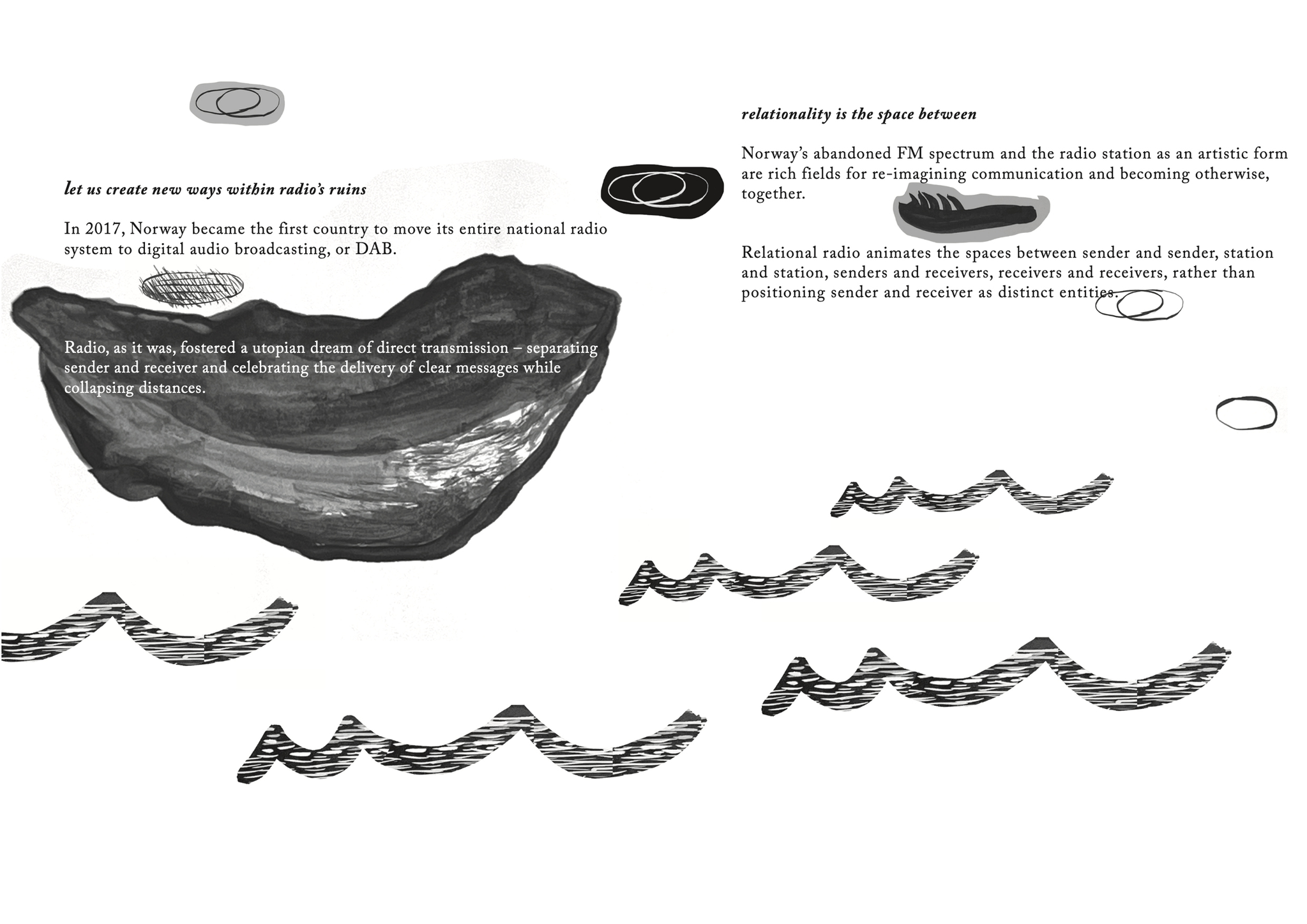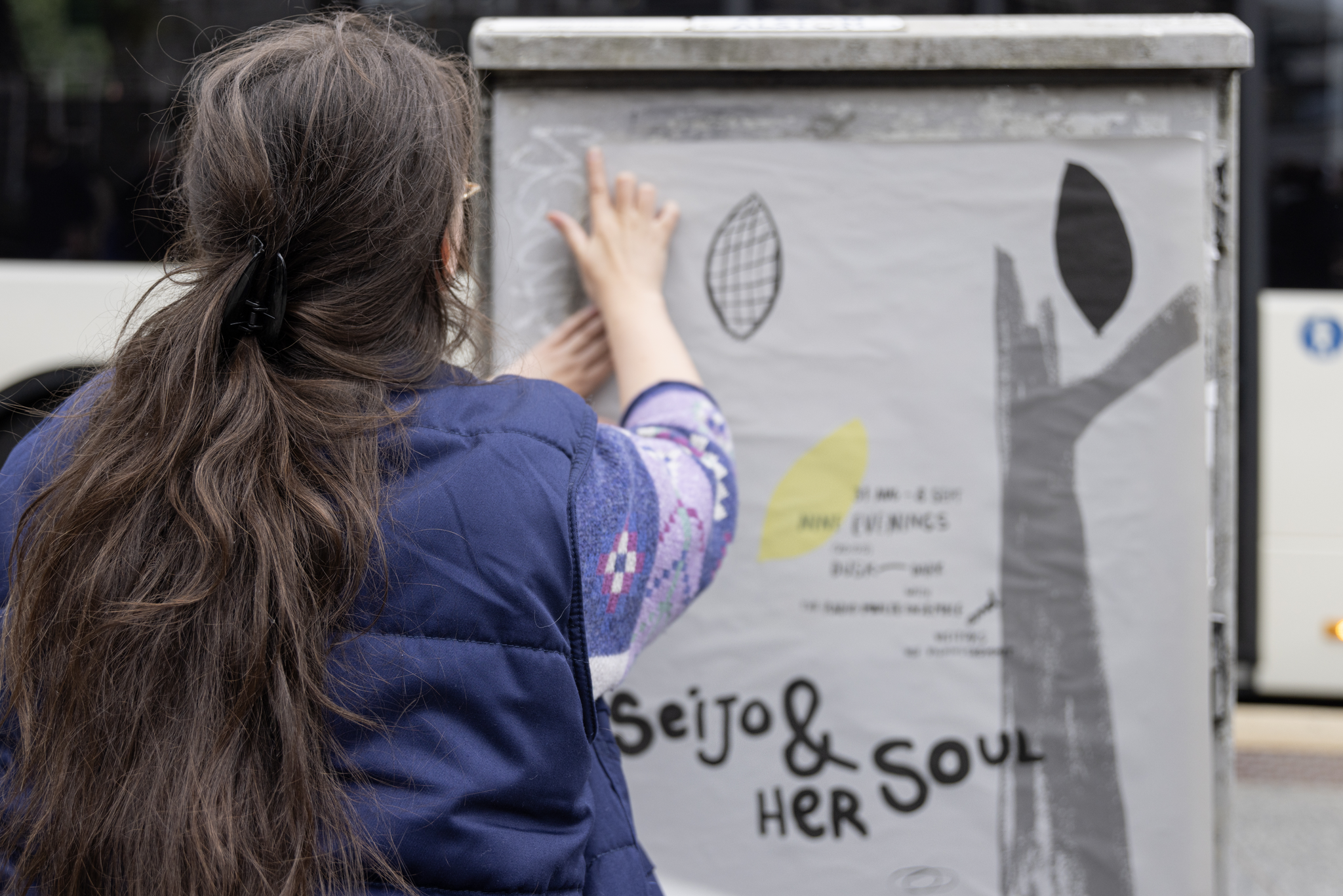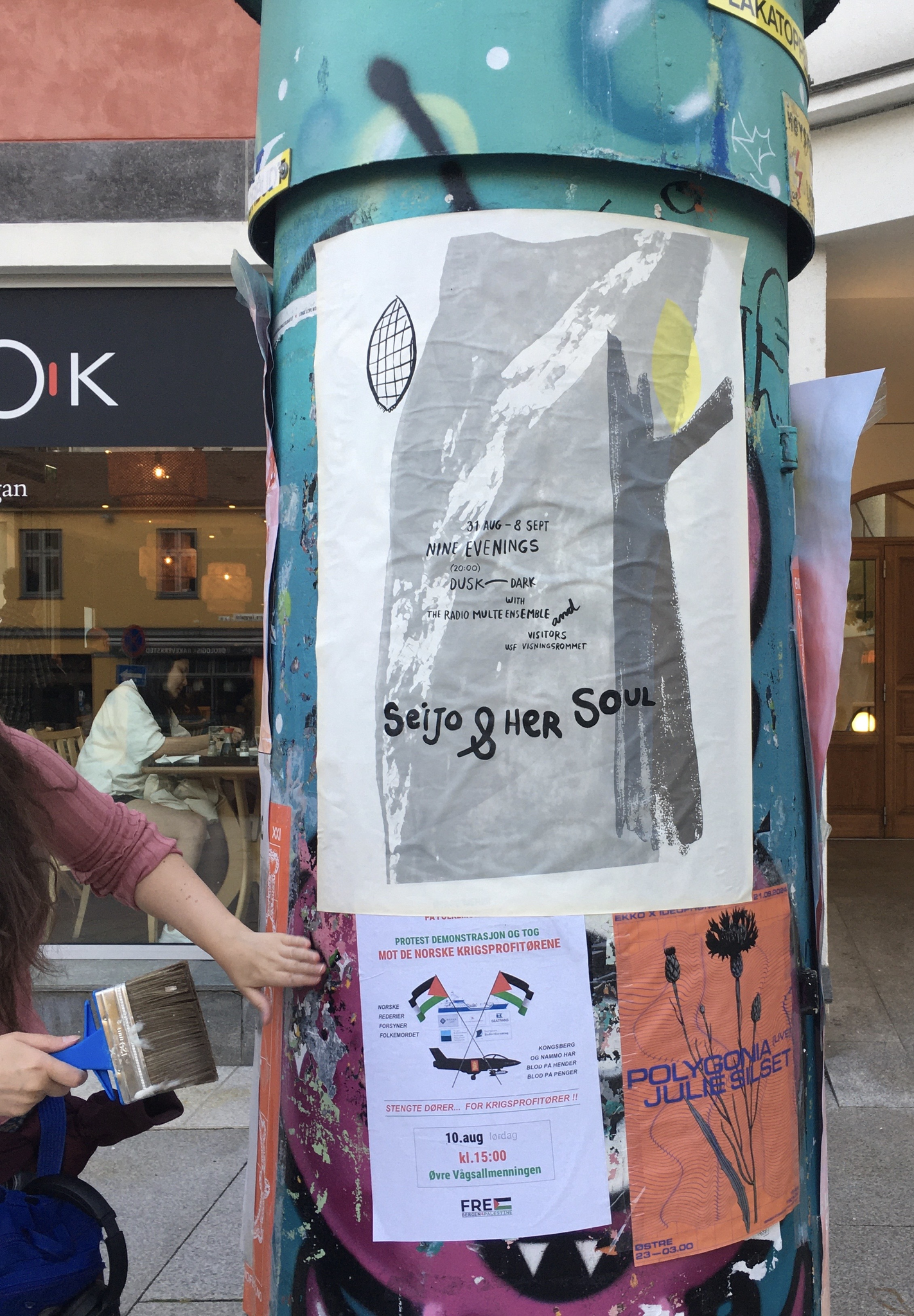 Seijo & her Soul extends into the city space with fragile paper broadcasts: hand-made wheat-pasted posters announcing the event and a zine that visitors receive when they leave, carrying the signal home. Seijo & her Soul brings together aspects of SkottegatenFM and Radio Multe: the radio station as an artistic form; qualities of radiophonic spaces; on-air conversation as co-creation; repetition and duration; relations between artist and audience and poetics of interference.
