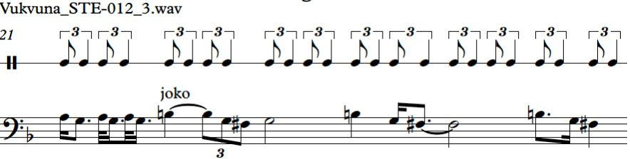 Vukvunga otti esille suurikokoisen kehärumpunsa ja alkoi lämmittää rummunkalvoa lieden yllä sivellen sitä samalla kädellään. Ehdin hädin tuskin kaivaa äänityslaitteeni esille, kun hän oli jo täydessä vauhdissa. Vukvunga aloitti rummuttamalla dramaattisesti ja aloitti sitten loitsun lukemisen kaltaisen syvä-äänisen laulannan.