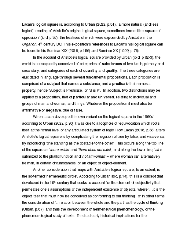 The exposition involves the adaptation of the psychoanalyst Jacques Lacan's logical square, to convey an idea of artistic research practice considered from the perspective of the human subject's position in its midst. As part of the discussion the author has used some evidence of a previous lecture presentation, integrating such material with that of a newer project concerning the visualization of a nightmare image of a phantom in a portal. The tools of the research are a hybrid form of writing that embroils fictional and academic modes as a language-based practice, and visual artistic practice. The author takes Lacan's idea of the confounding of any logical argument by automatic obfuscation of it by unconscious process, and imagines that he has an other to him as a subjective second voice. The question of voices is central to the research; the suggestion that one does speak to oneself in various ways simultaneously that may be fashioned as distinct and separate. It is argued that the research aspect of artistic practice involves just a section of Lacan's logical square, particularly concerning contingency. This orientation may call to question one's tendency to reason and find meaning from the necessary locus of inquiry from the vantage-point of the language-based Symbolic – of Lacan's three psychic structuring registers Imaginary, Symbolic, Real. The element of fiction provides a literary inclination whereby, while the artistic research speaks about itself as research and references a visual practice, the exposition could also be considered a language-based practice in its own right.